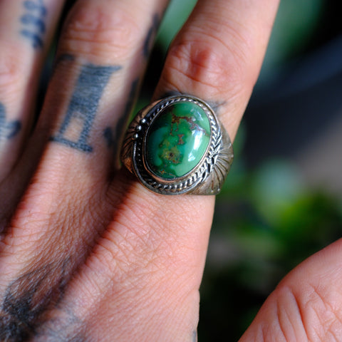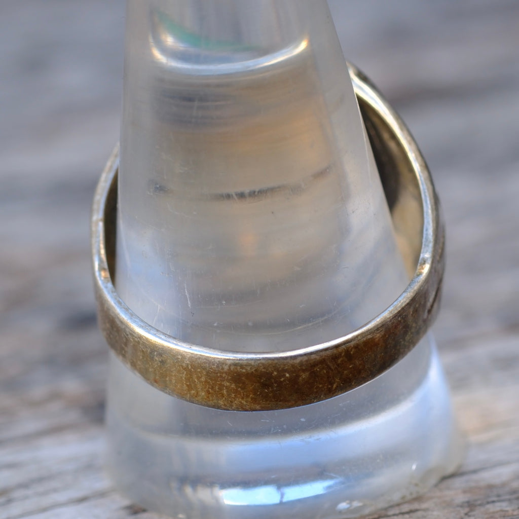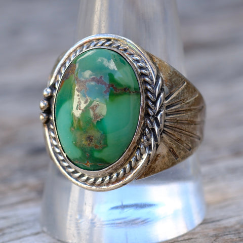Vintage Sterling Turquoise Ribbed Bandf Ring 11.75