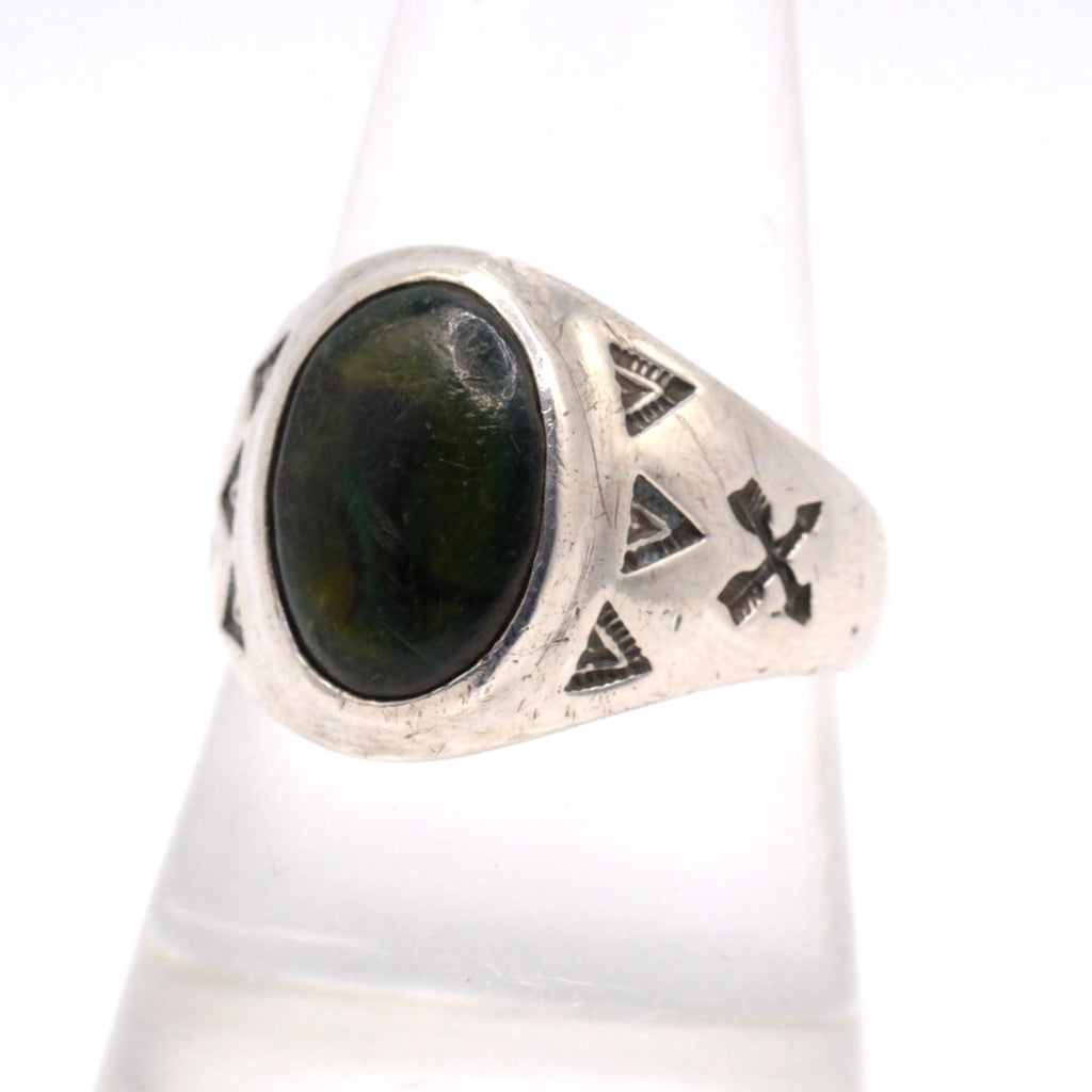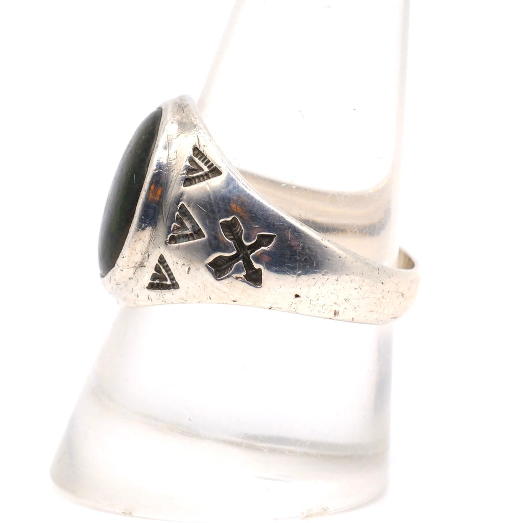 Vintage Sterling Blue Abalone Crossed Arrows Stamped Ring 9.75