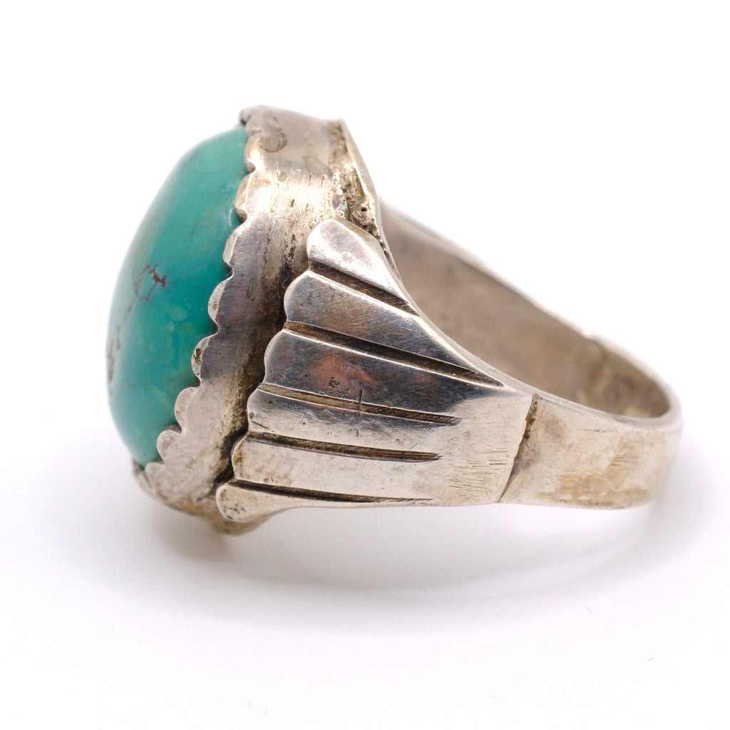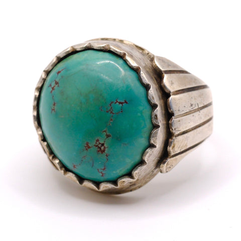 Vintage Sterling Turquoise Ribbed Band Ring 11.75