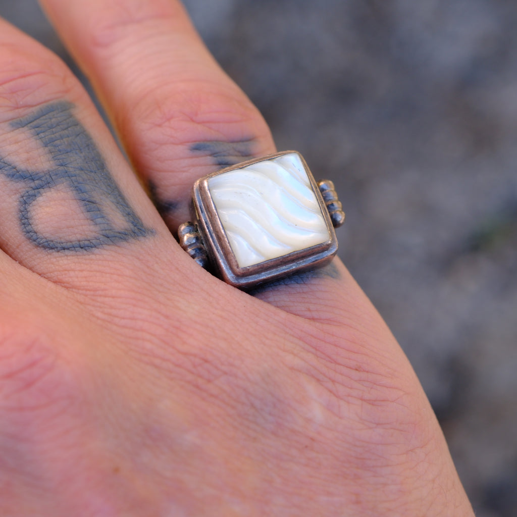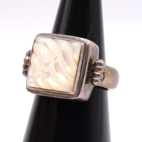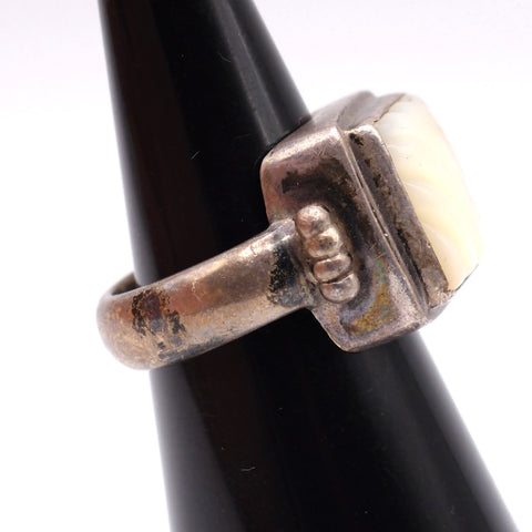 Vintage Sterling Faceted Mother OF Pearl Ring 6.5