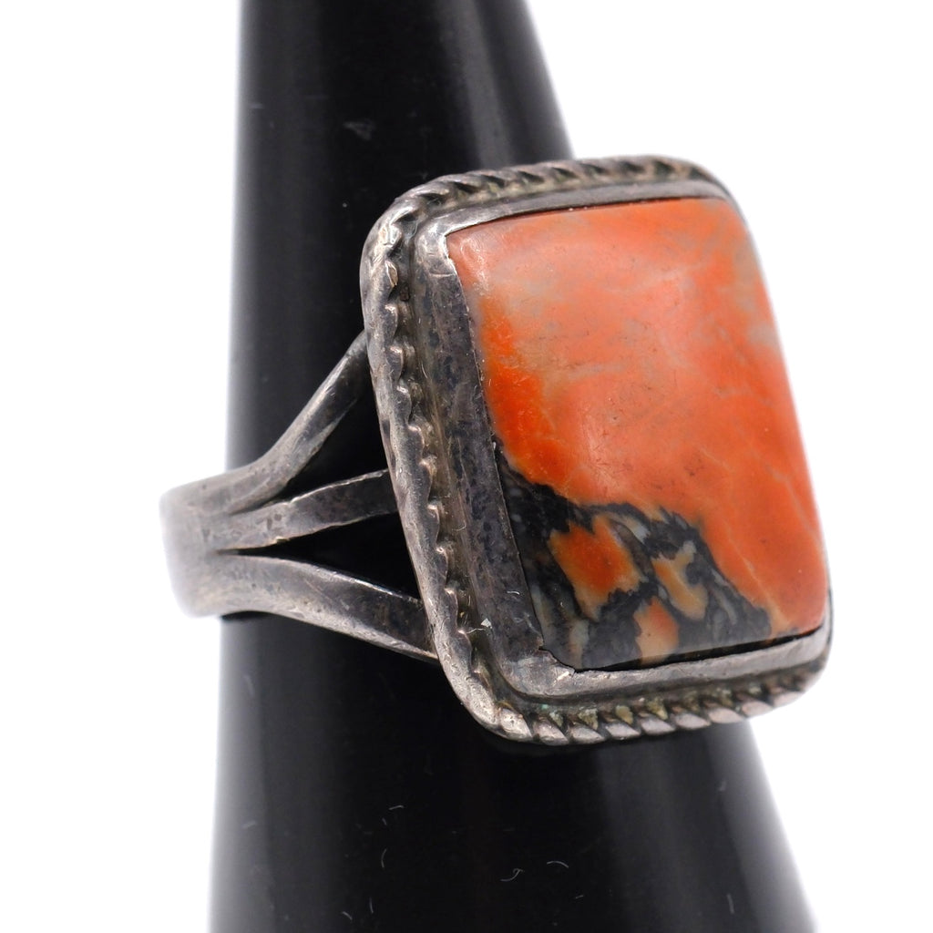 Mid Century Vintage Sterling Petrified Wood Ring 10
