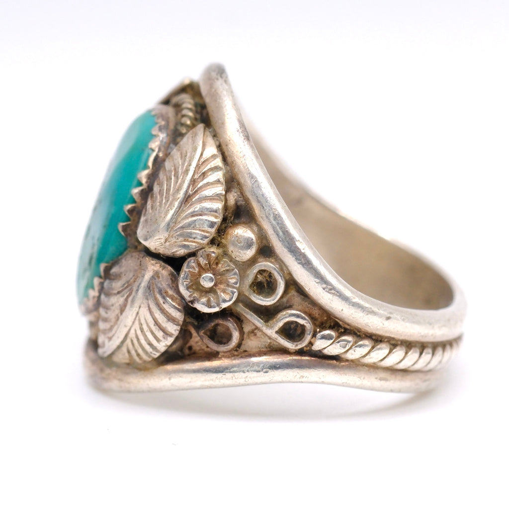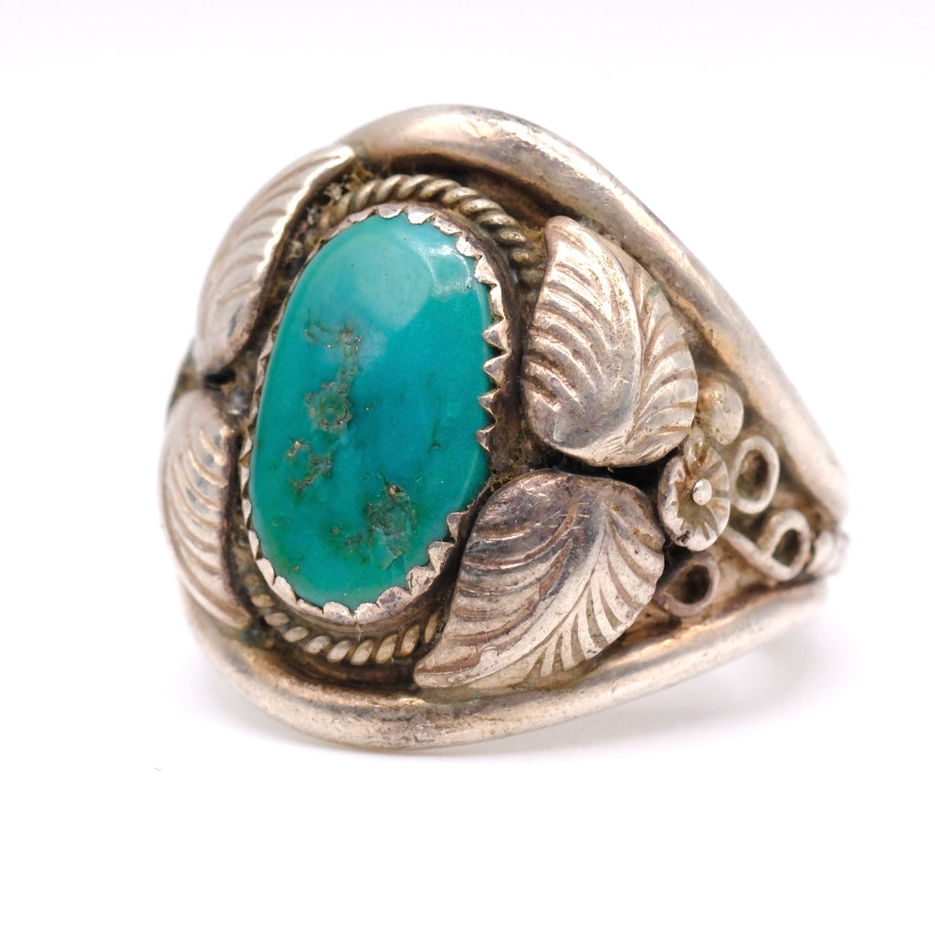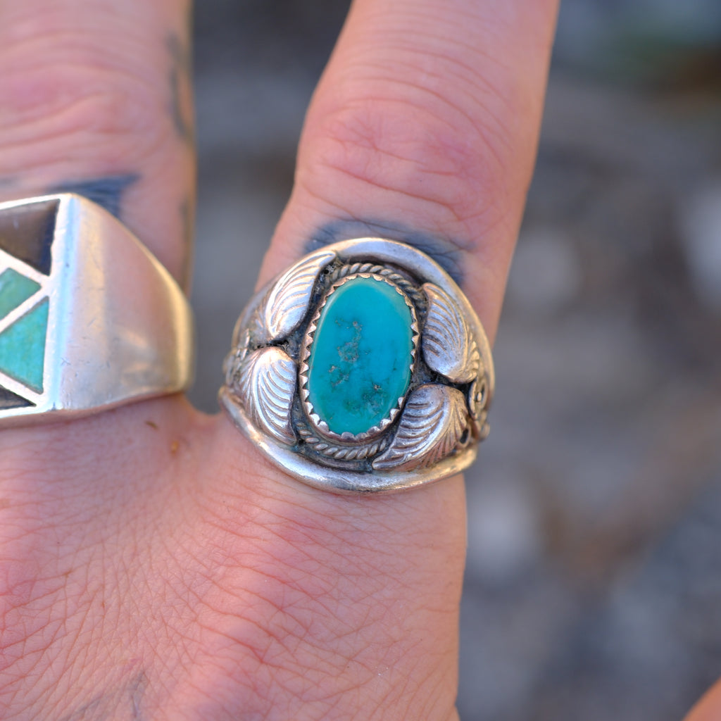 Vintage Sterling Turquoise Feather Ring 10.5