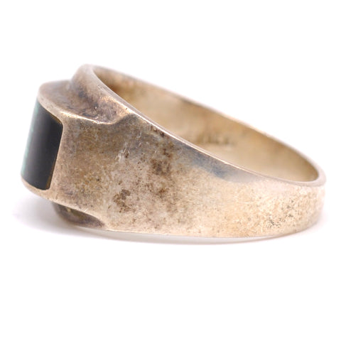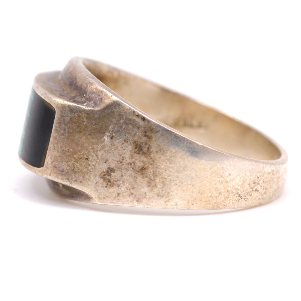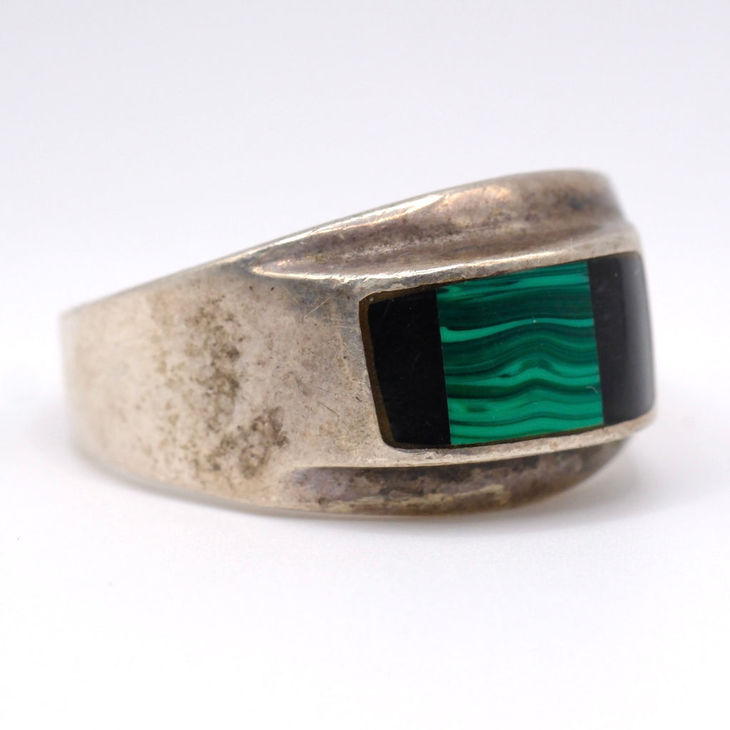 Vintage Sterling Onyx and Malachite Inlay Band 14
