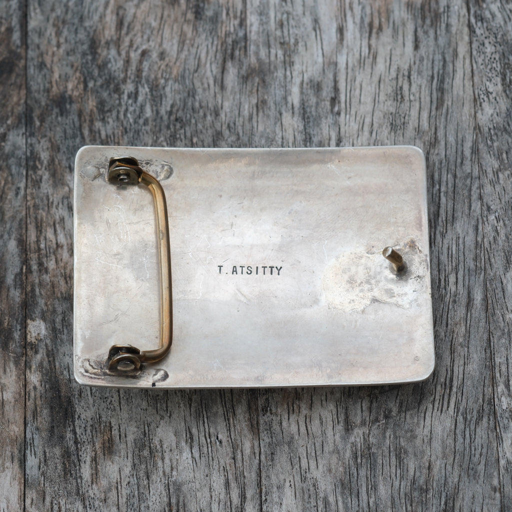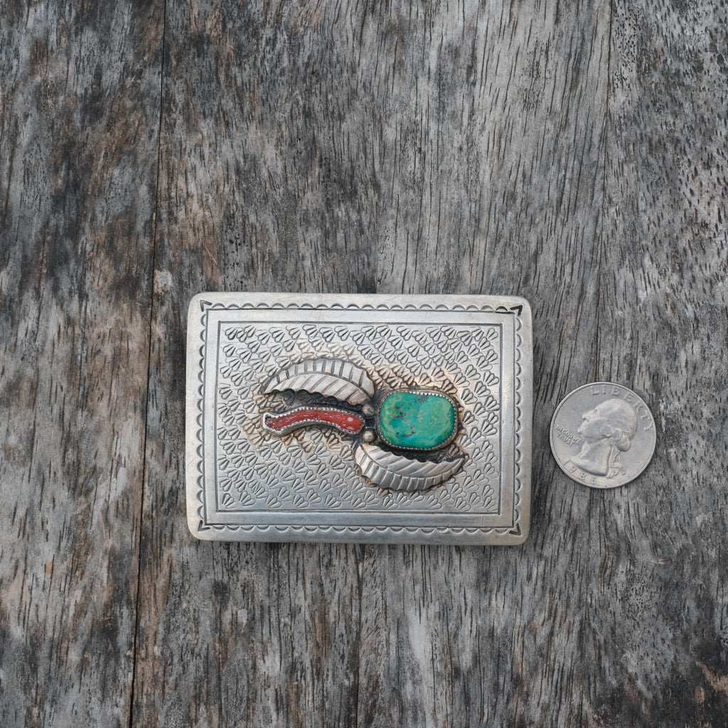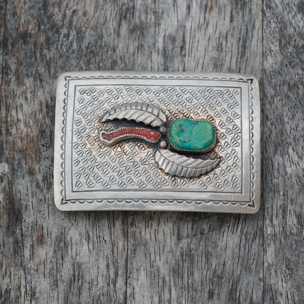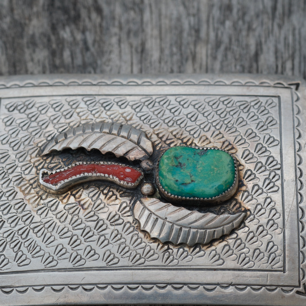 Vintage Sterling Turquoise and Coral Belt Buckle