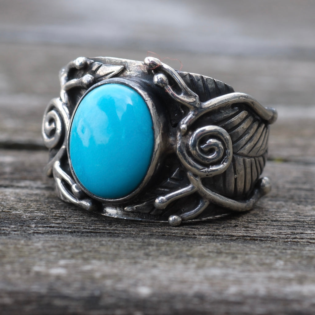 Vintage Sterling Turquoise Band 6.5