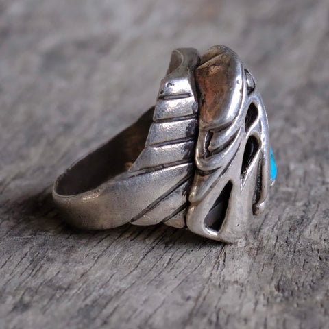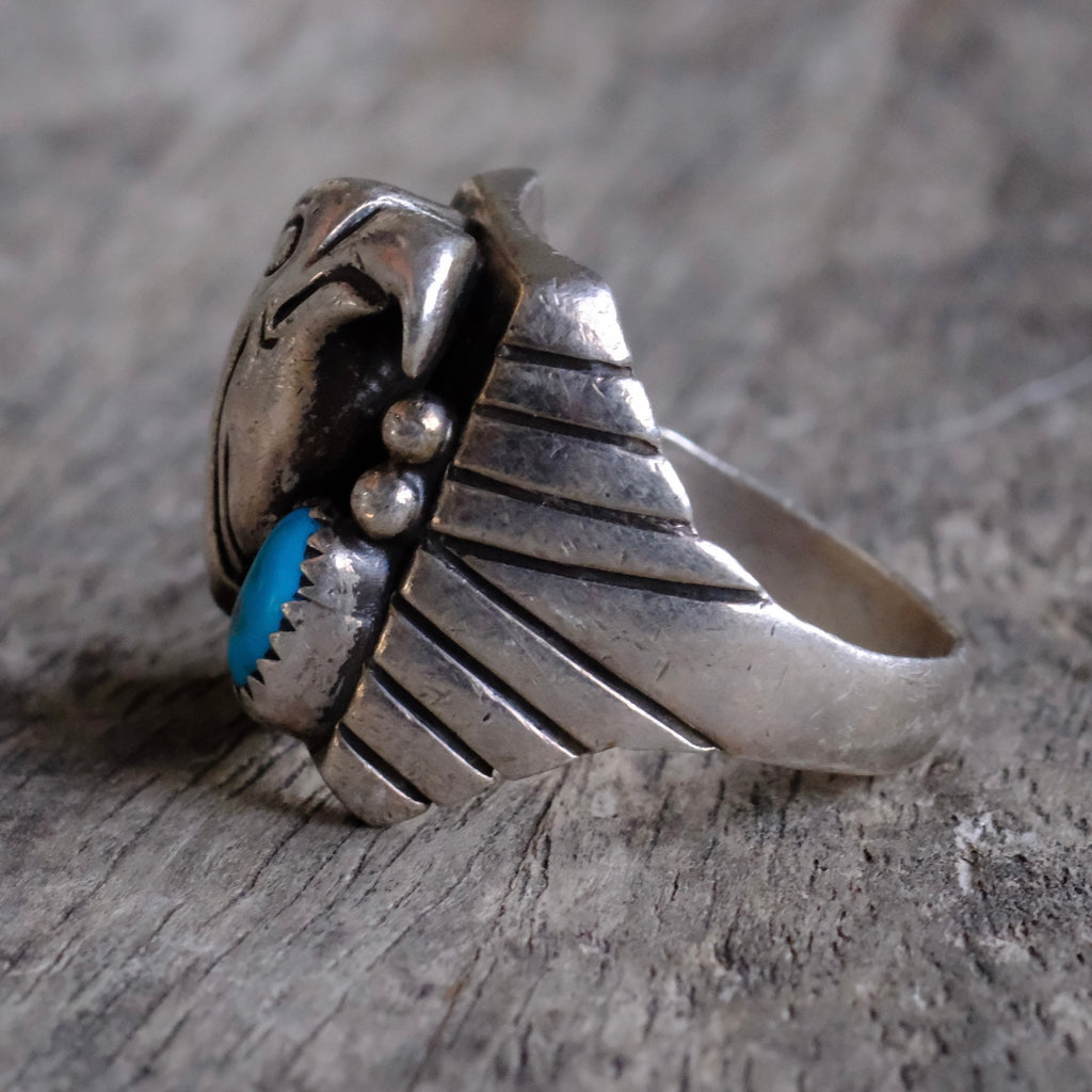 Vintage Sterling Turquoise Eagle Ring