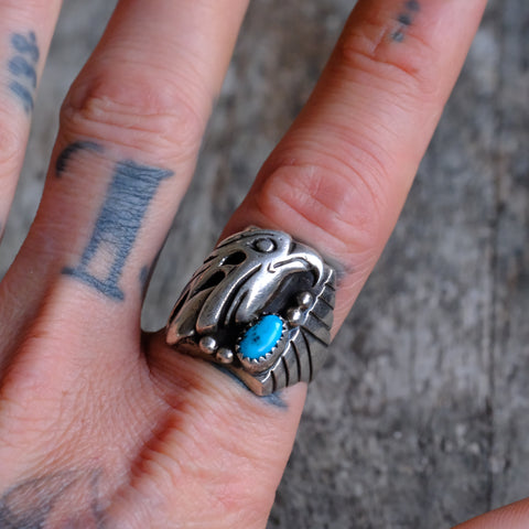 Vintage Sterling Turquoise Eagle Ring 9.5