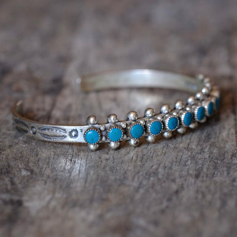 Vintage Sterling Snake Eye Turquoise Cuff Bracelet 6.25"