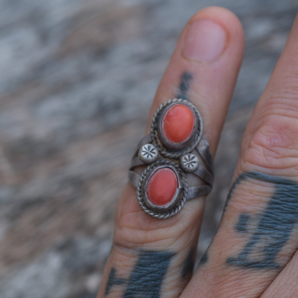 Vintage Sterling 2-Stone Coral Band 4