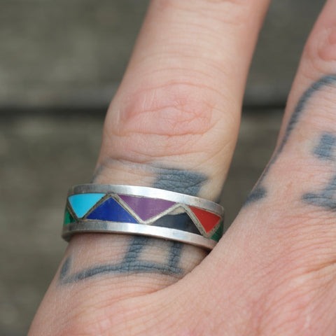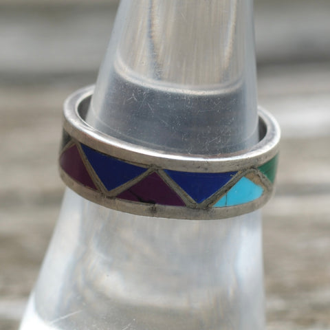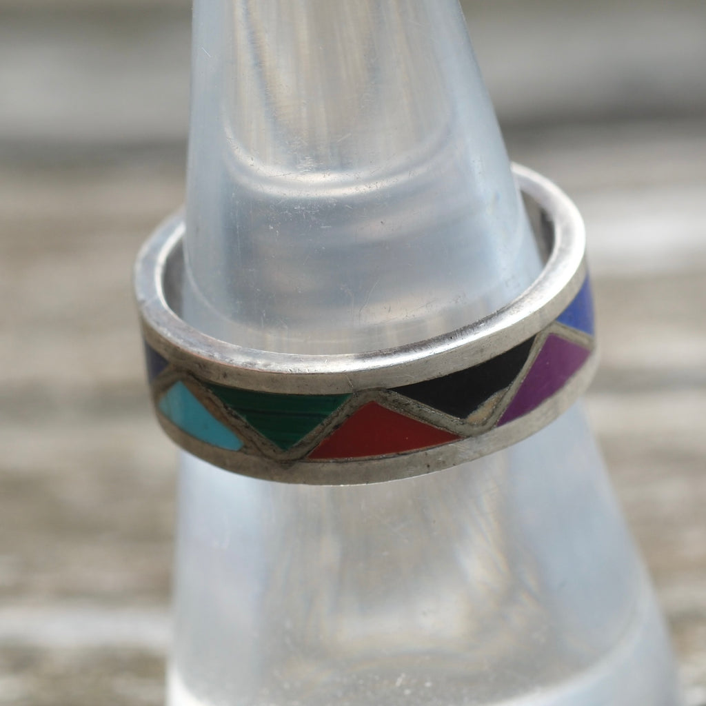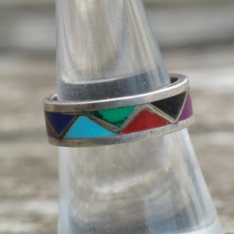 Vintage Sterling Multistone Inlay Band 7.75