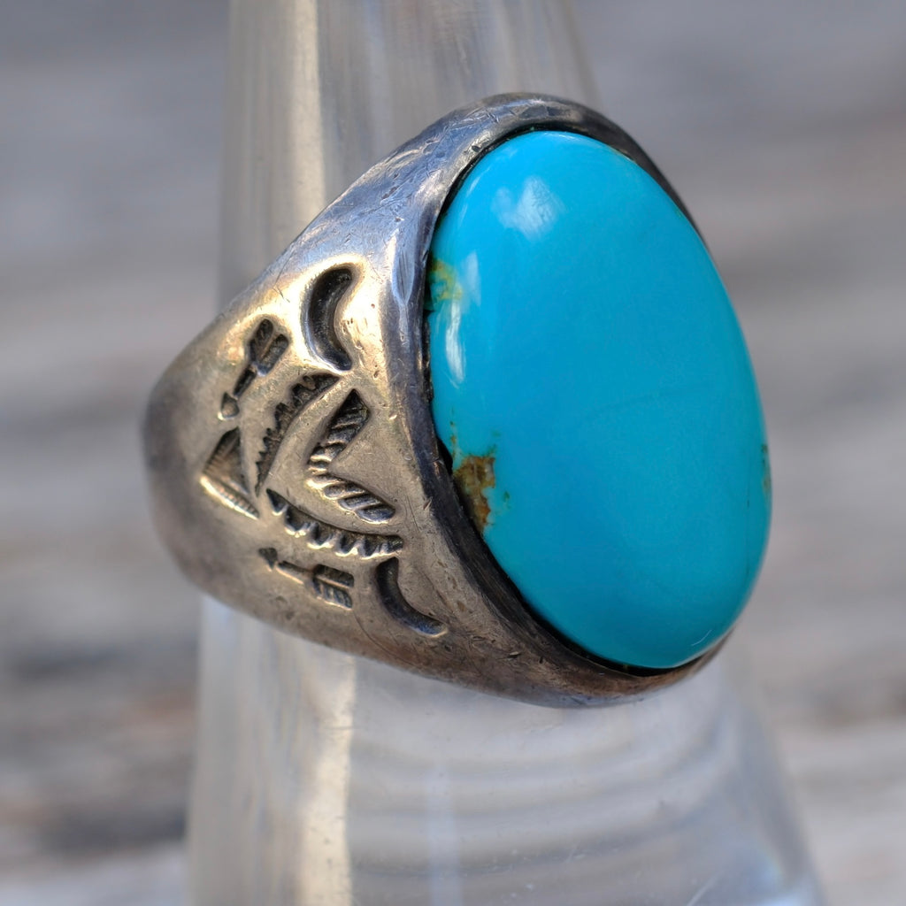Vintage Sterling Turquoise Bells Trading Post Ring