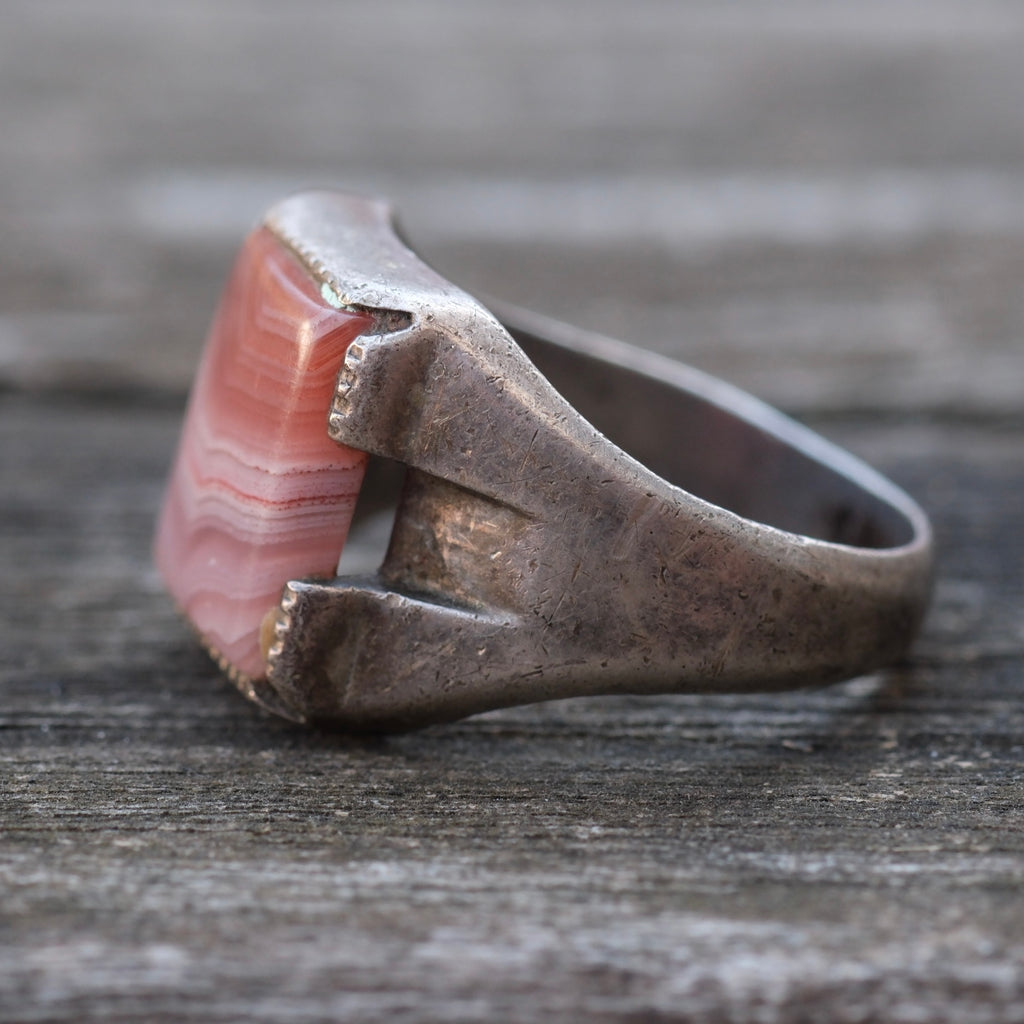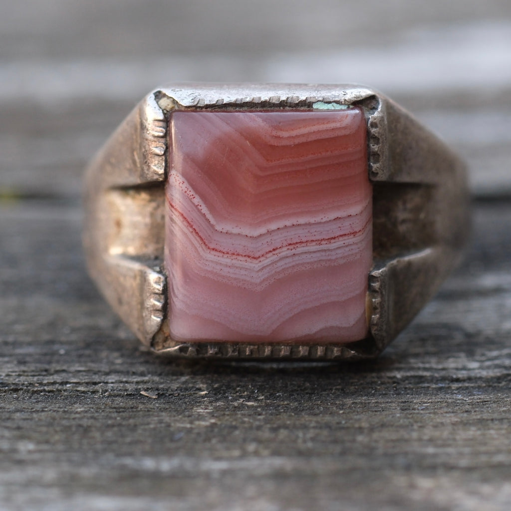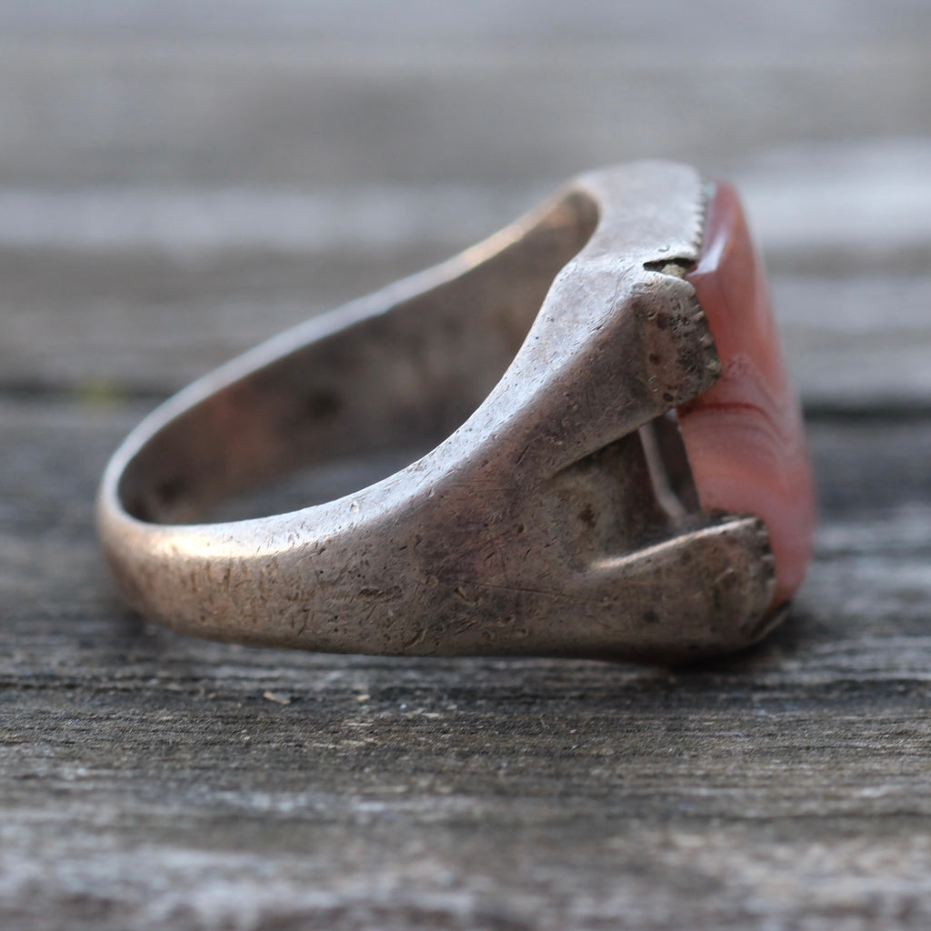 Vintage Sterling Agate Signet Ring