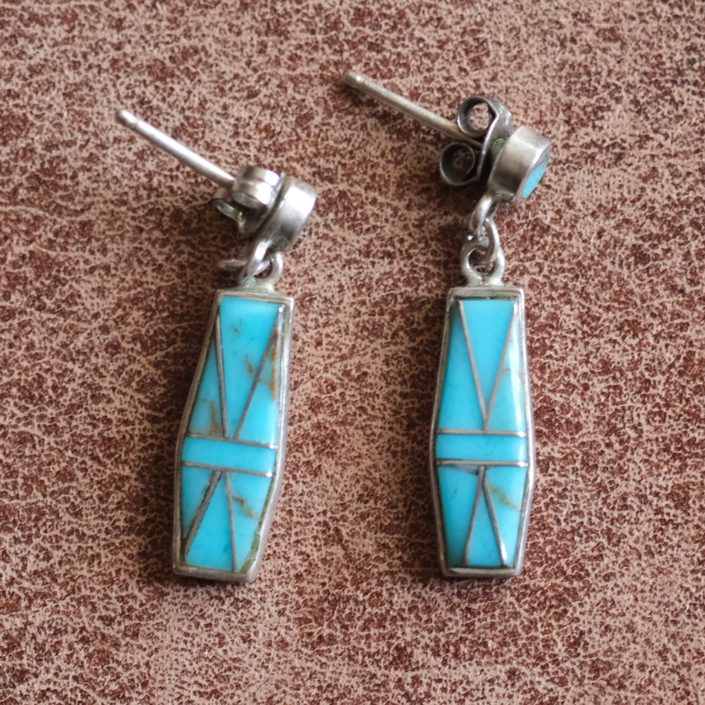 Vintage Sterling Turquoise Inlay Drop Earrings