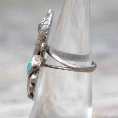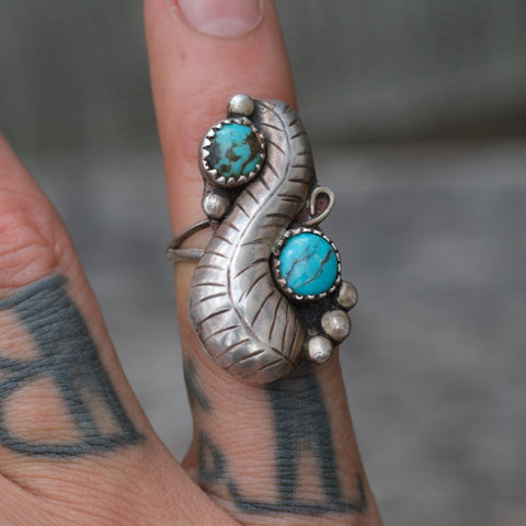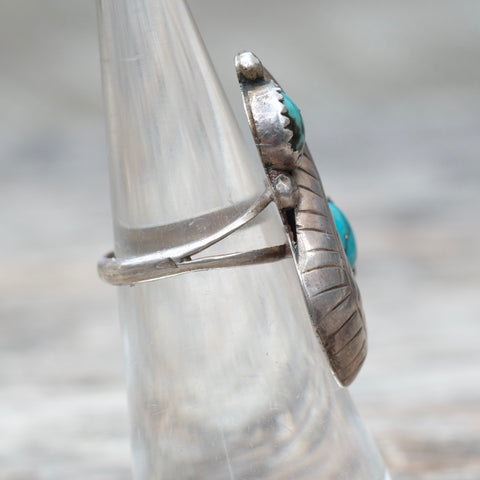 Vintage Sterling 2-Stone Turquoise Feather Ring