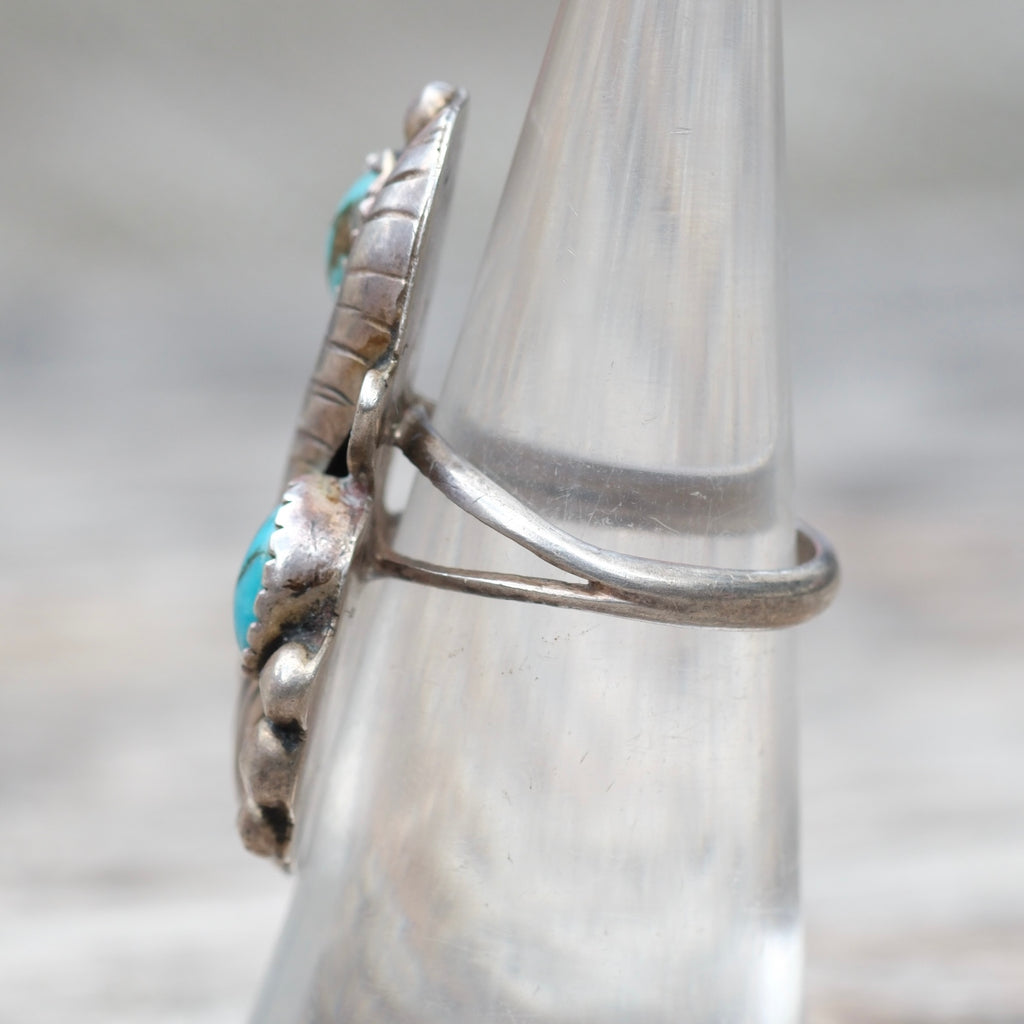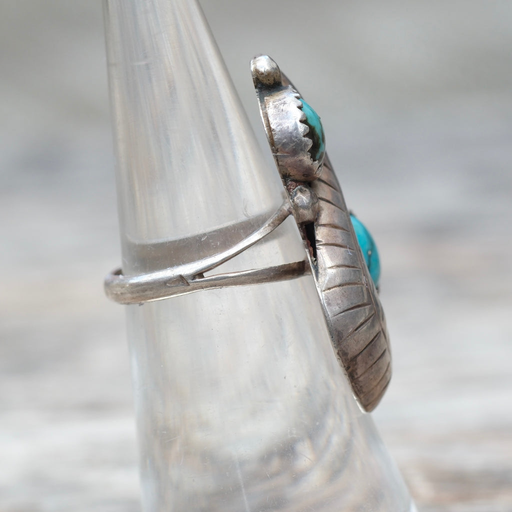 Vintage Sterling 2-Stone Turquoise Feather Ring 5