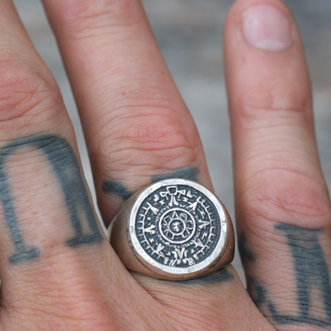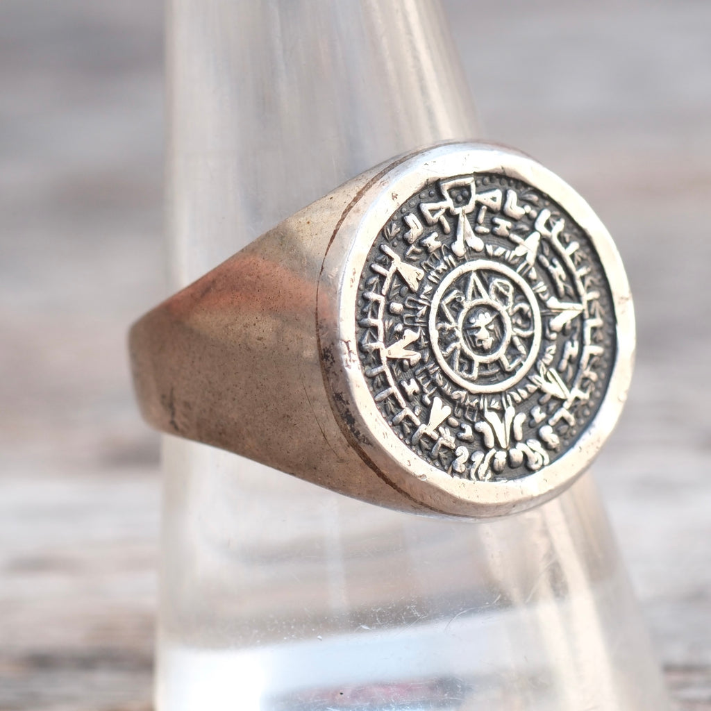 Vintage Sterling Aztec Calendar Ring