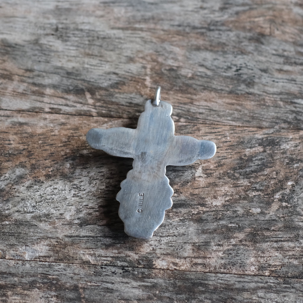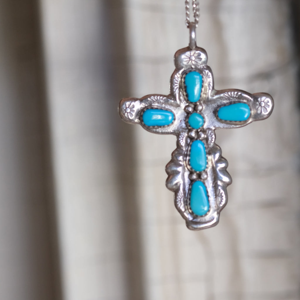 Vintage Sterling 7-Stone Coral Cross Necklace