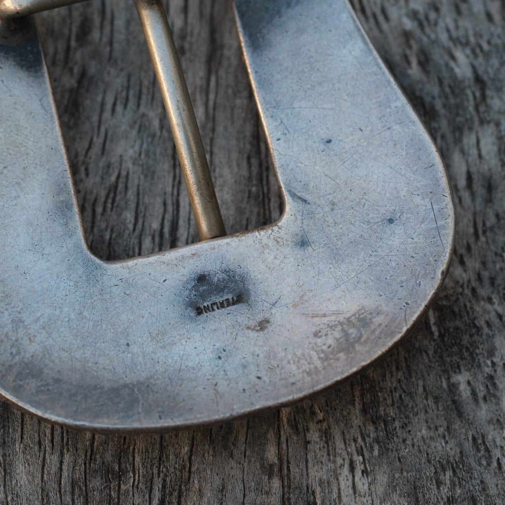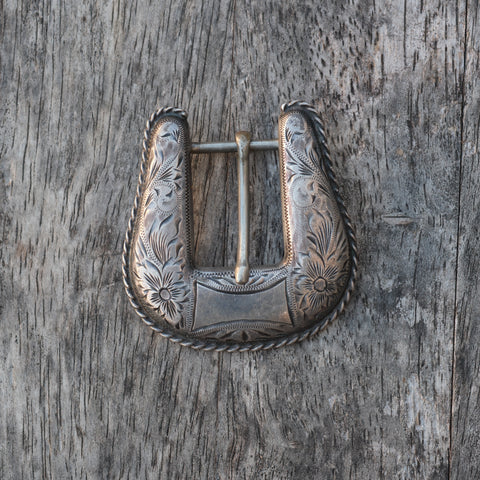Vintage Sterling Silver Hand Engraved Floral Belt Buckle .75"