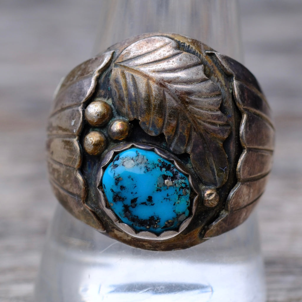 Vintage Sterling Turquoise Turquoise Feather Ring 10.75
