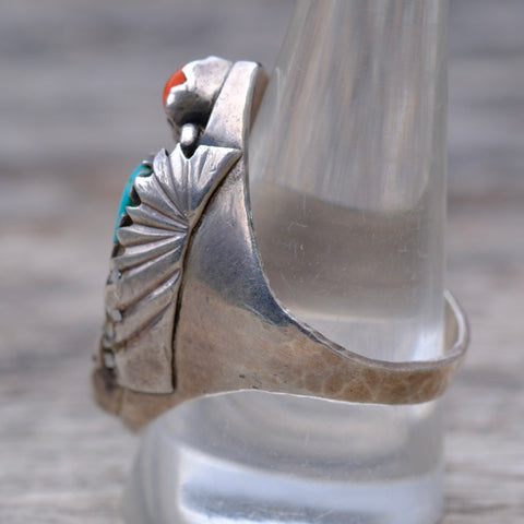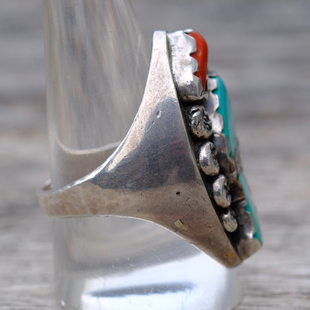 Vintage Sterling Turquoise and Coral Ring 10.25