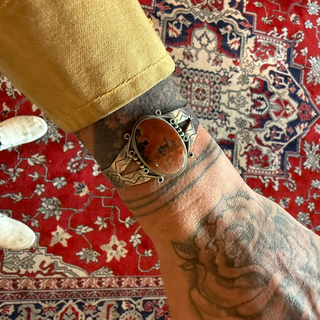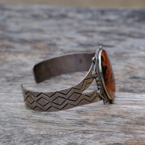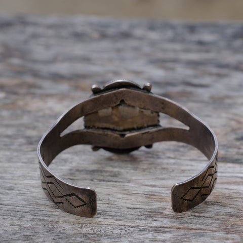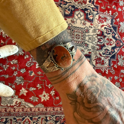 Vintage Sterling Petrified Wood Stamped Cuff