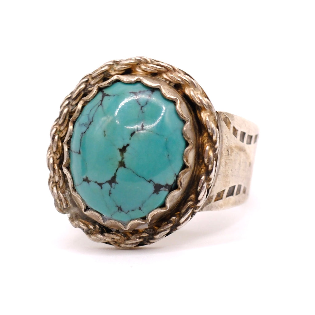 Vintage Sterling Turquoise Roper Stamped Band Ring 12.25