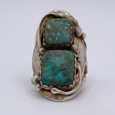 Vintage Sterling 2-Stone Turquoise Feather Ring