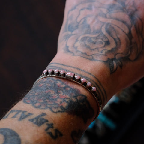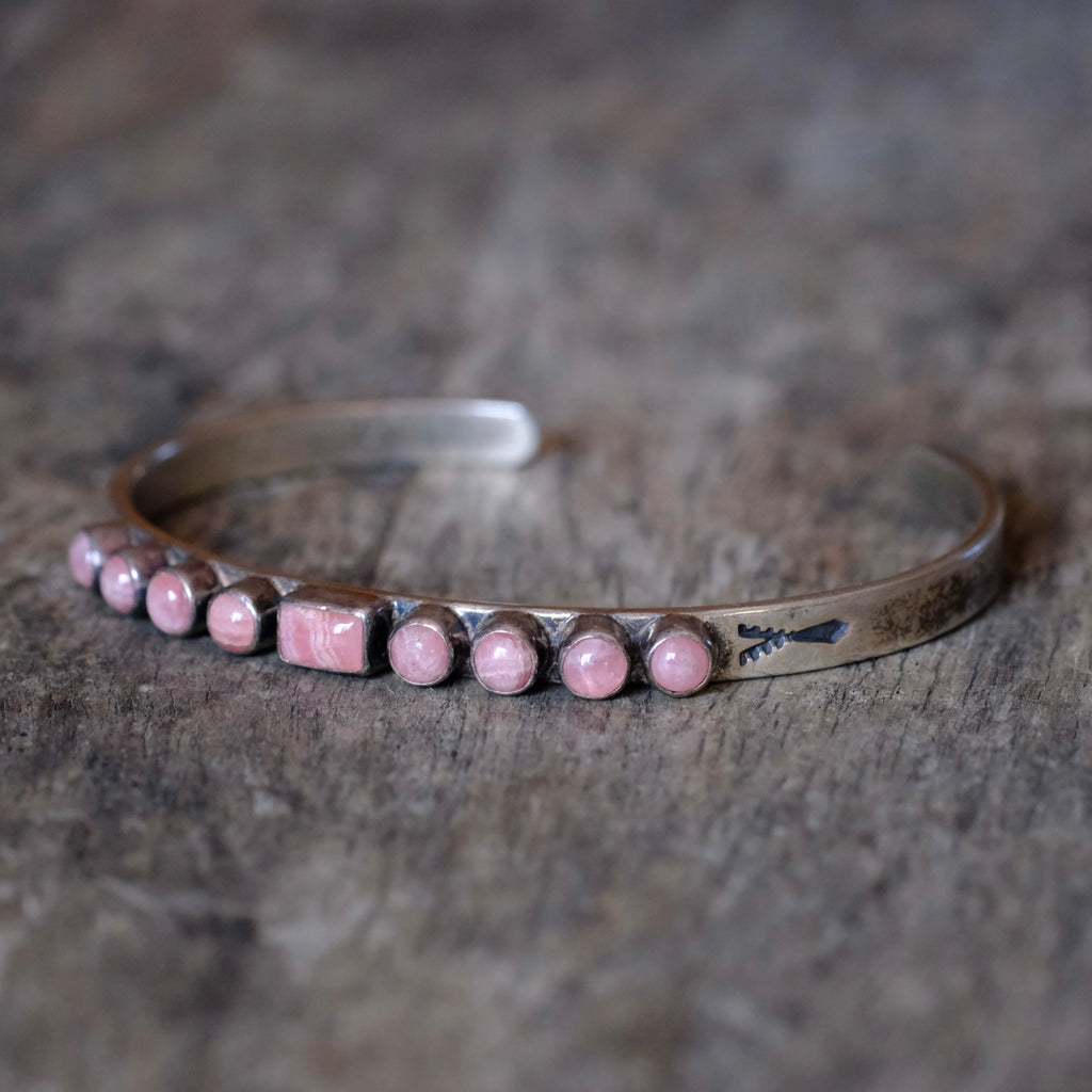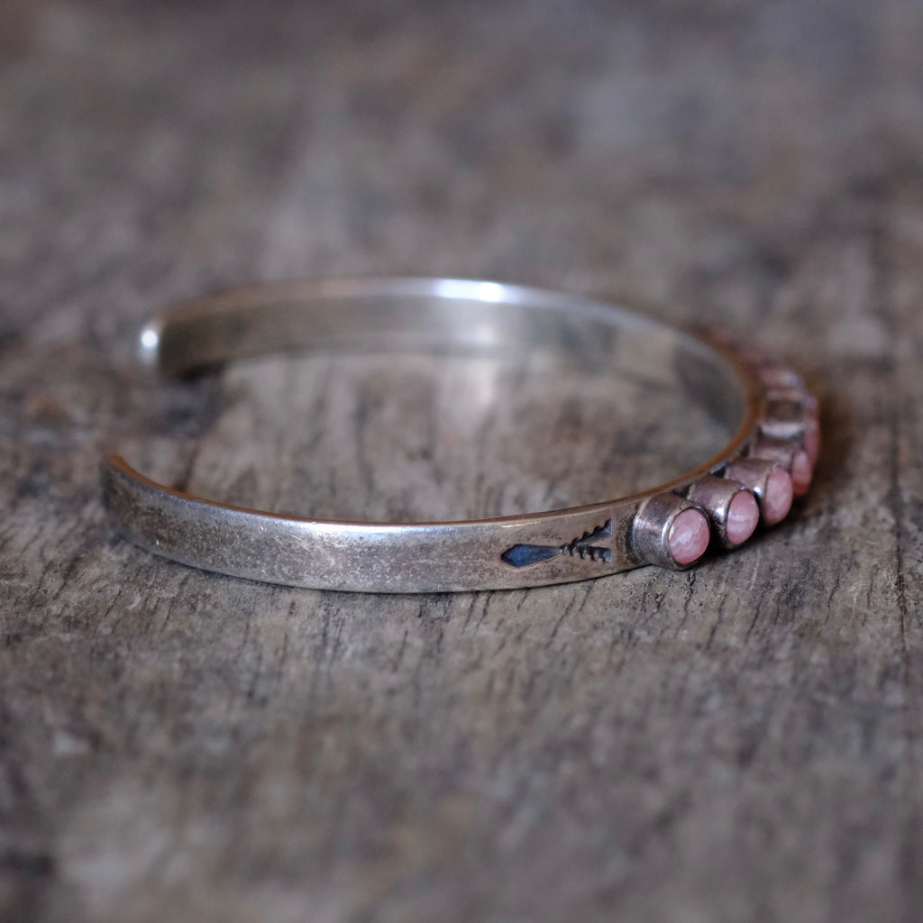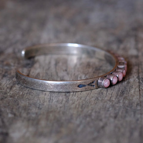 Vintage Sterling Rhodonite Stamped Cuff Bracelet