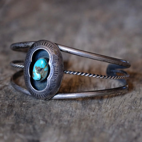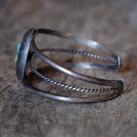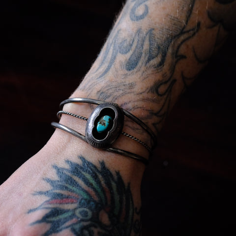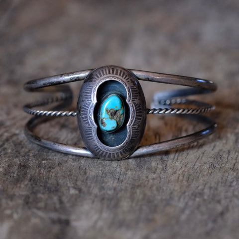 Vintage Sterling Turquoise Shadowbox Cuff Bracelet