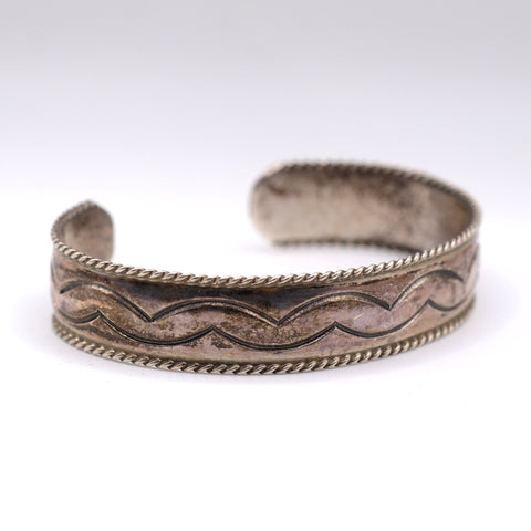 Vintage Sterling Silver Stamped Cuff Bracelet