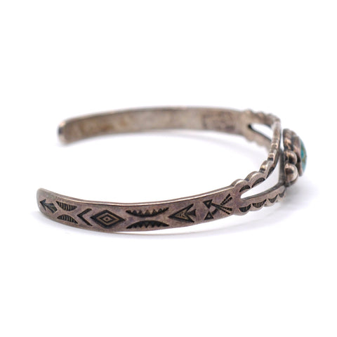 Vintage Sterling Turquoise Stamped Cuff Bracelet