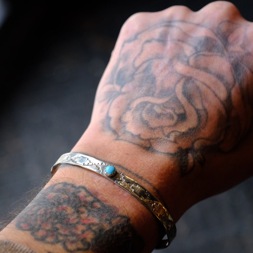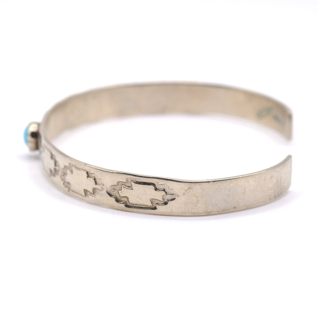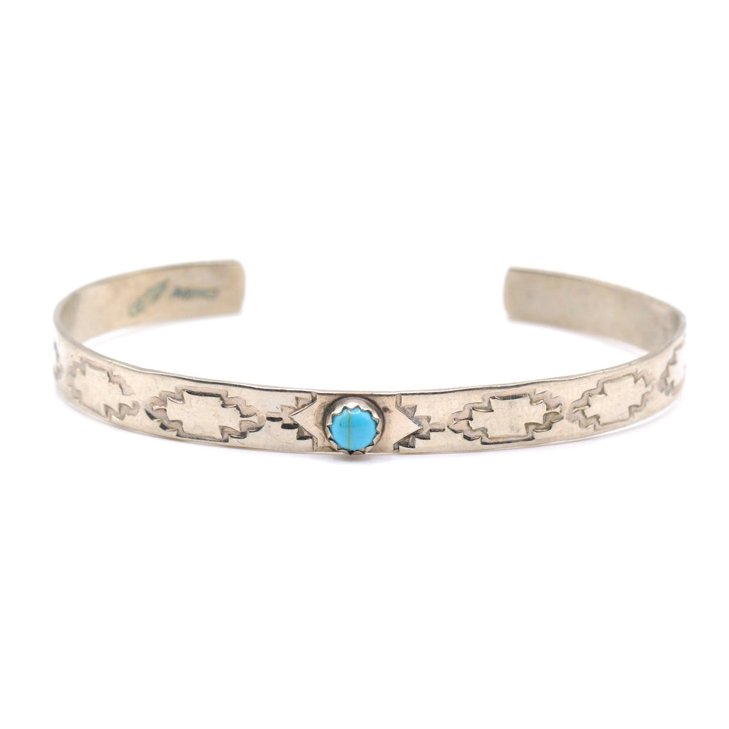 Vintage Sterling Turquoise Stamped Cuff 6.75"