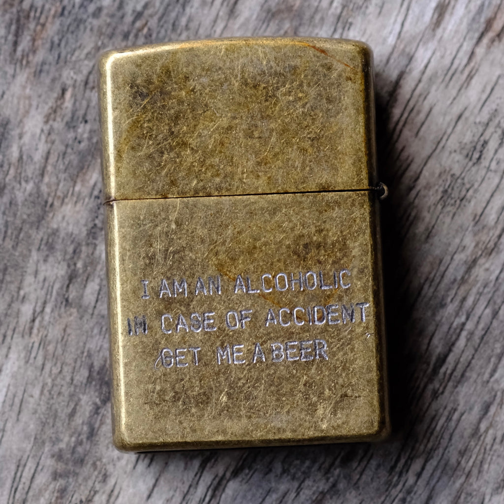 "I am an alcoholic in case of accident get me a beer"