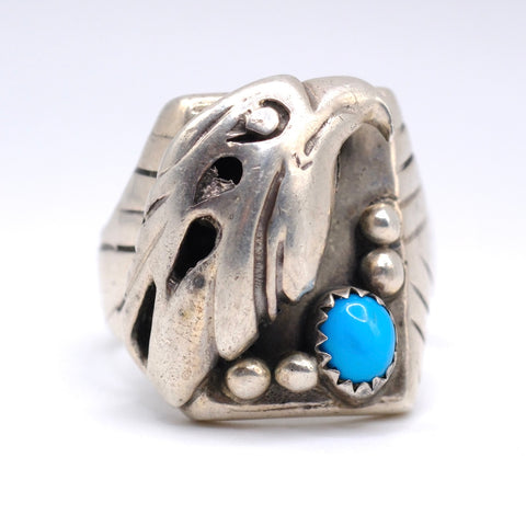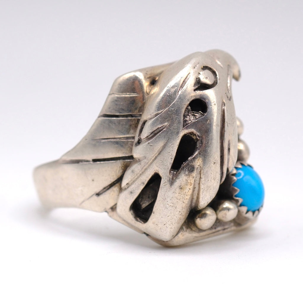 Vintage Sterling Turquoise Eagle Ring 10.25