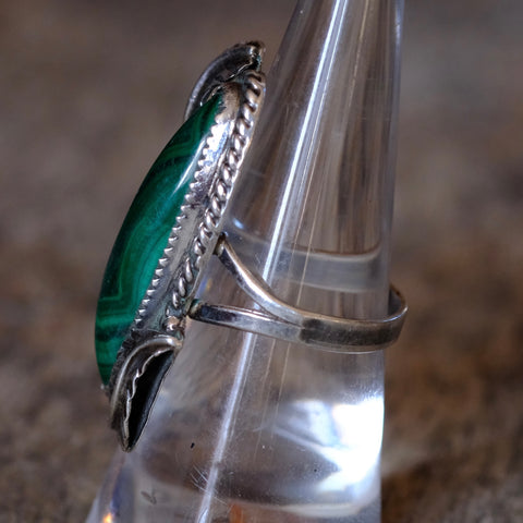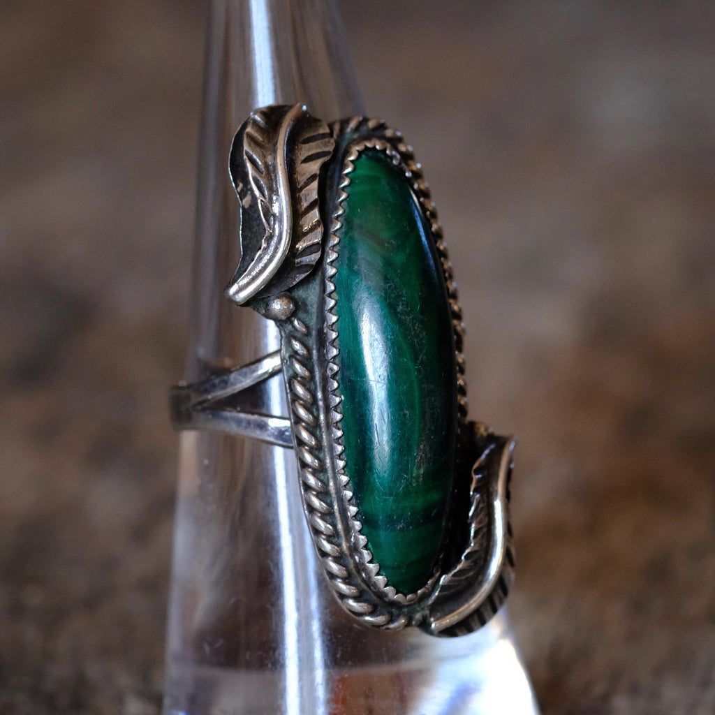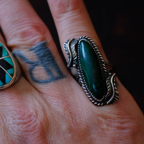 Vintage Sterling Malachite Feather Ring 7.5