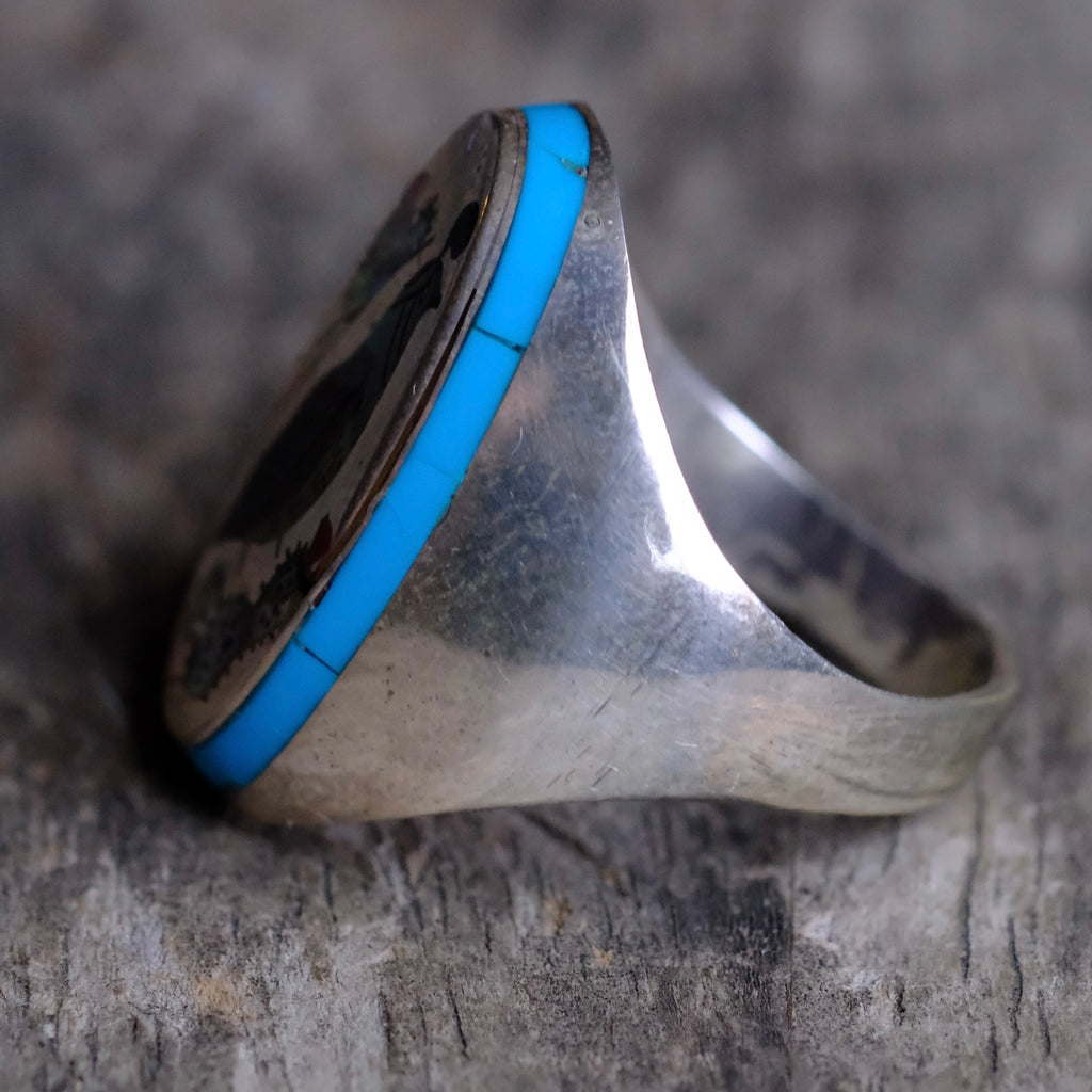 Vintage Sterling Inlaid Desert Bird Ring 11.5