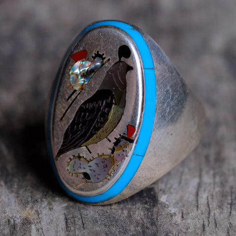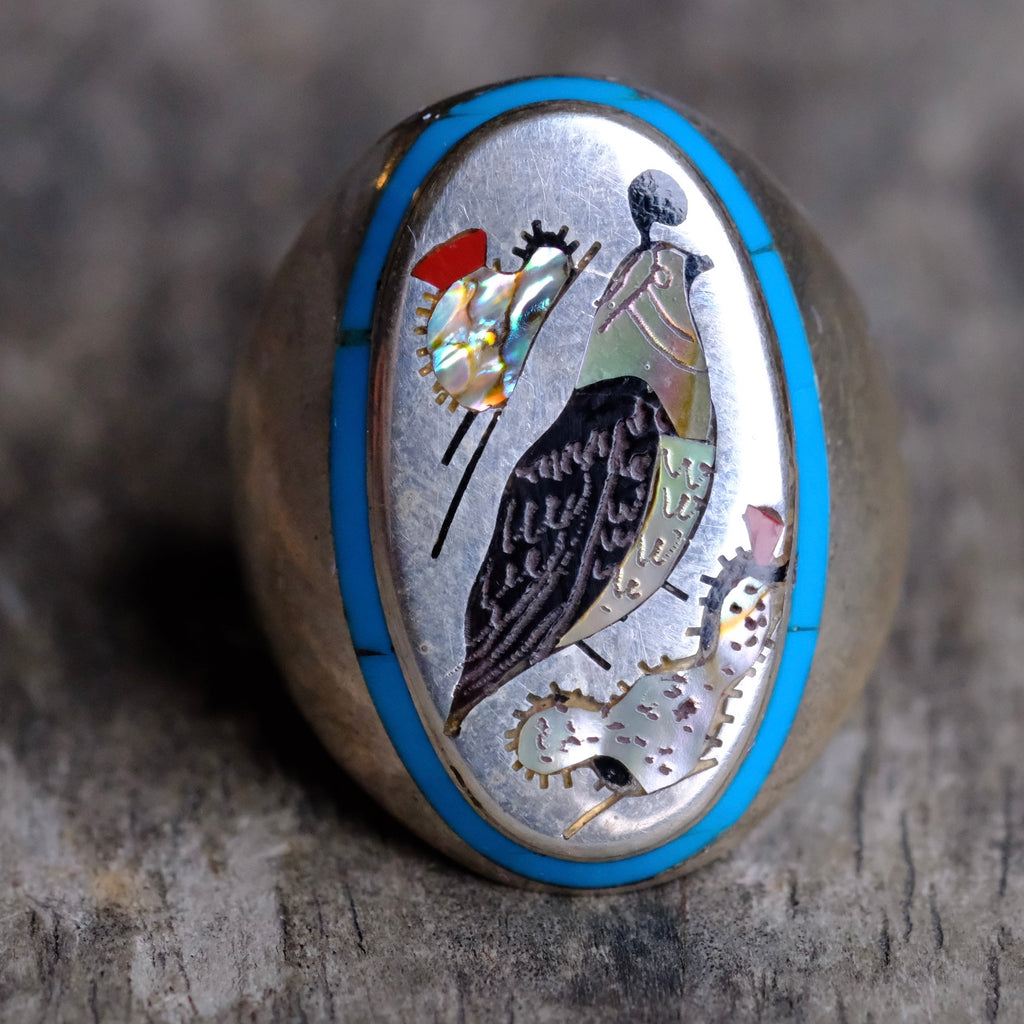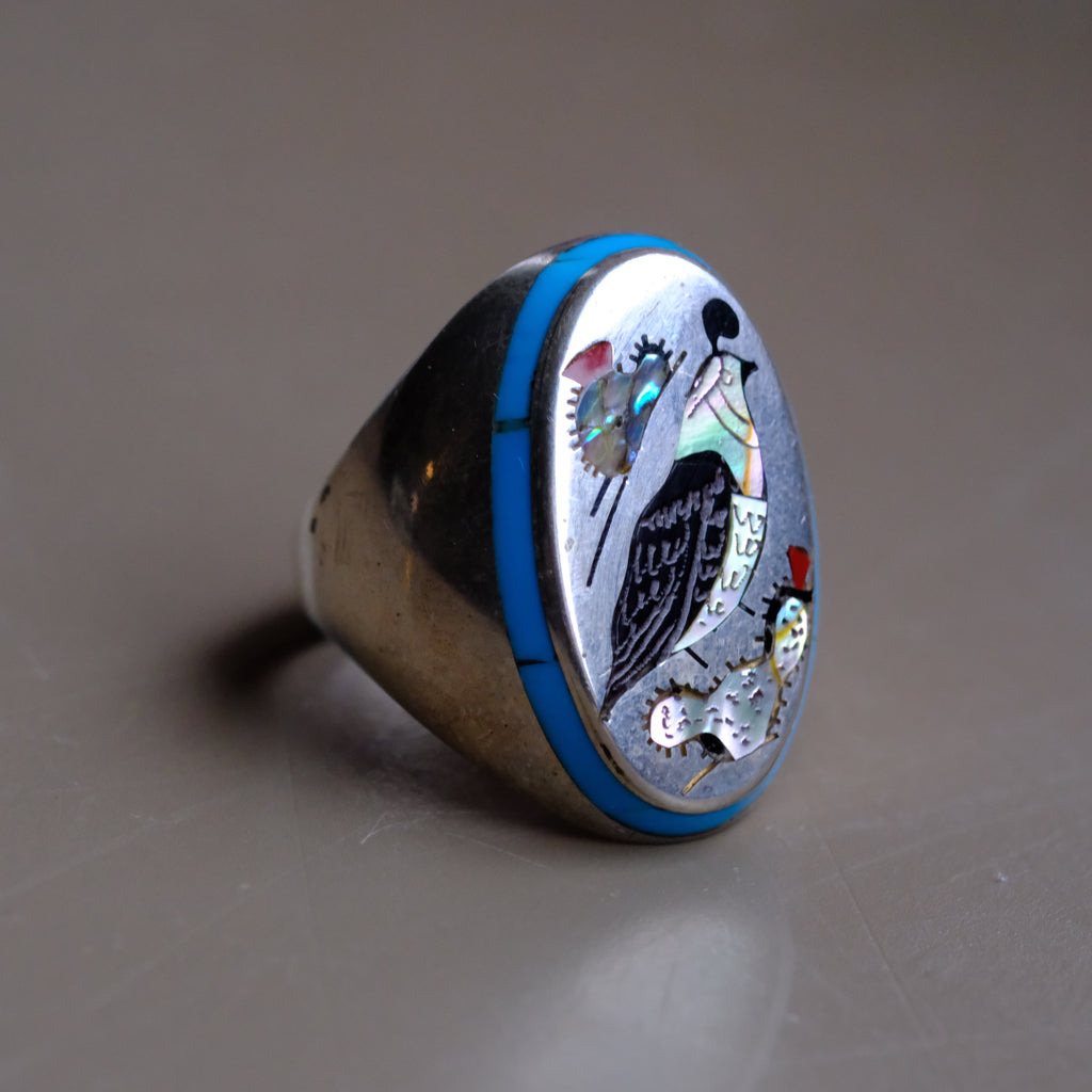 Vintage Sterling Inlaid Desert Bird Ring