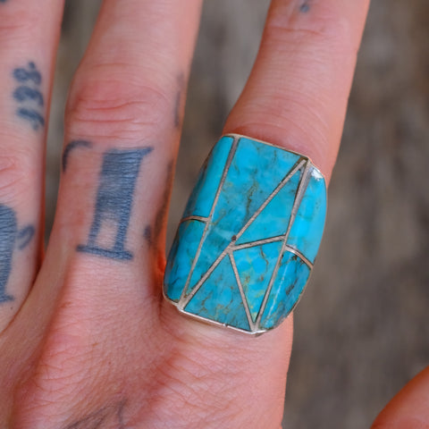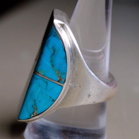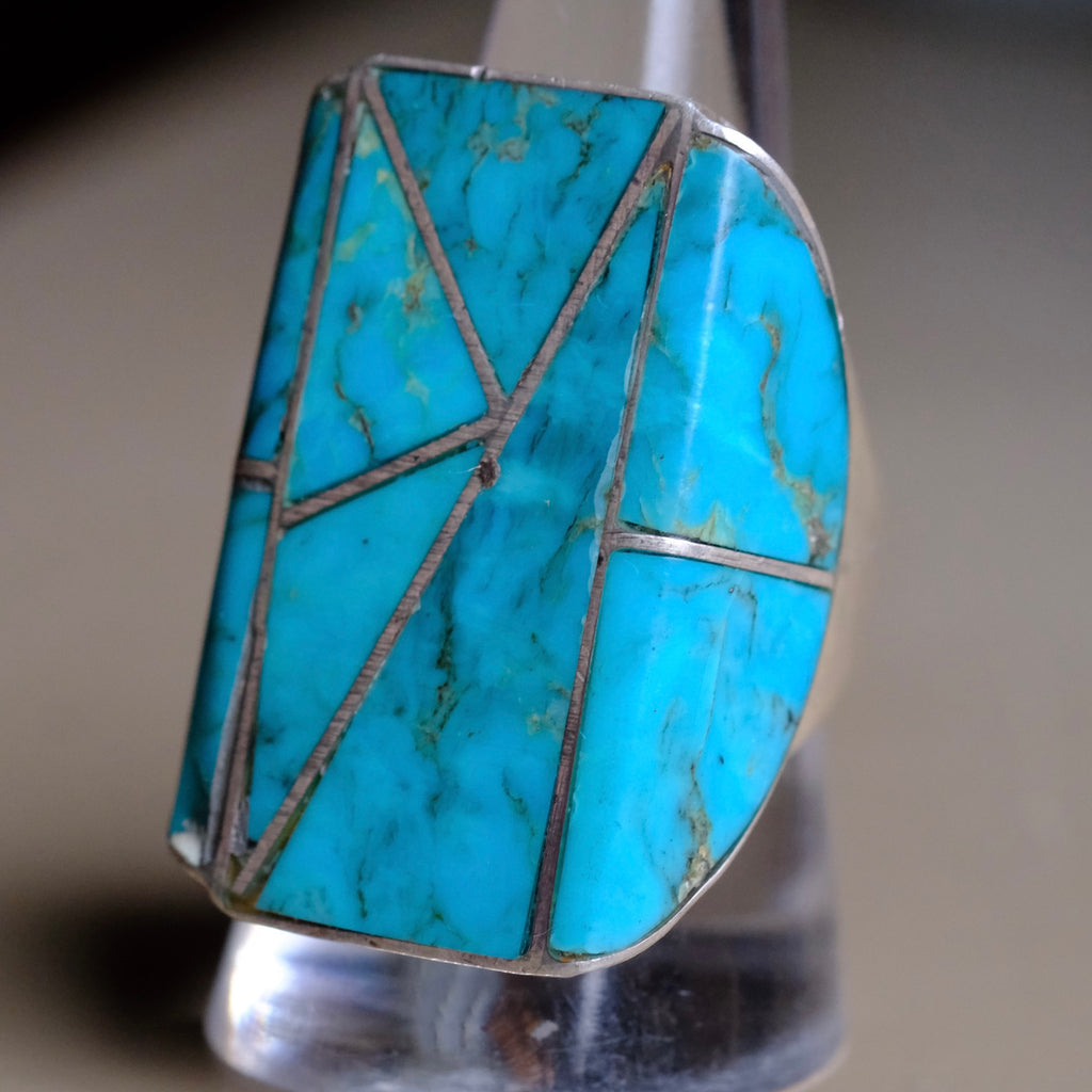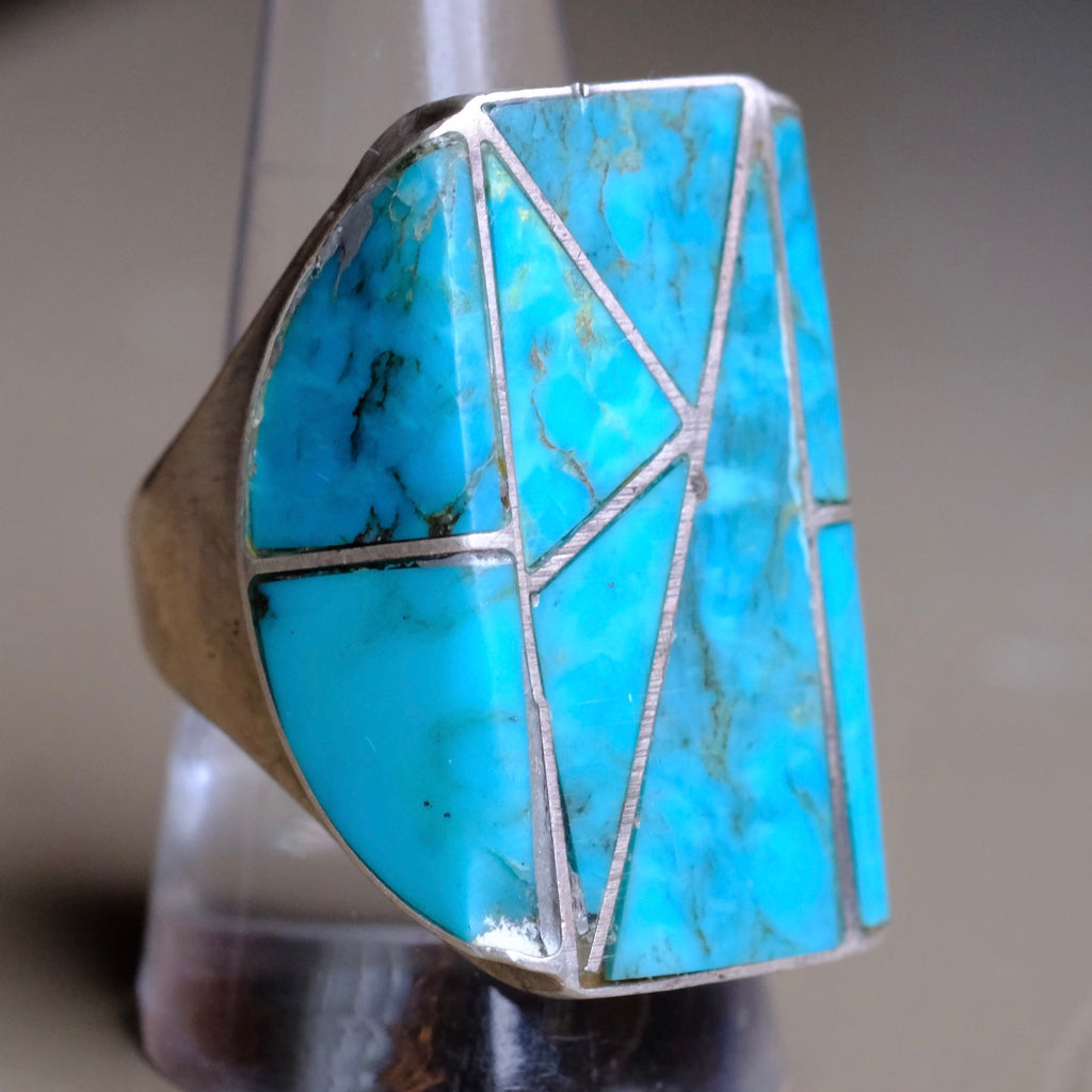 RARE Vintage Sterling Turquoise Inlay Ring 10.25