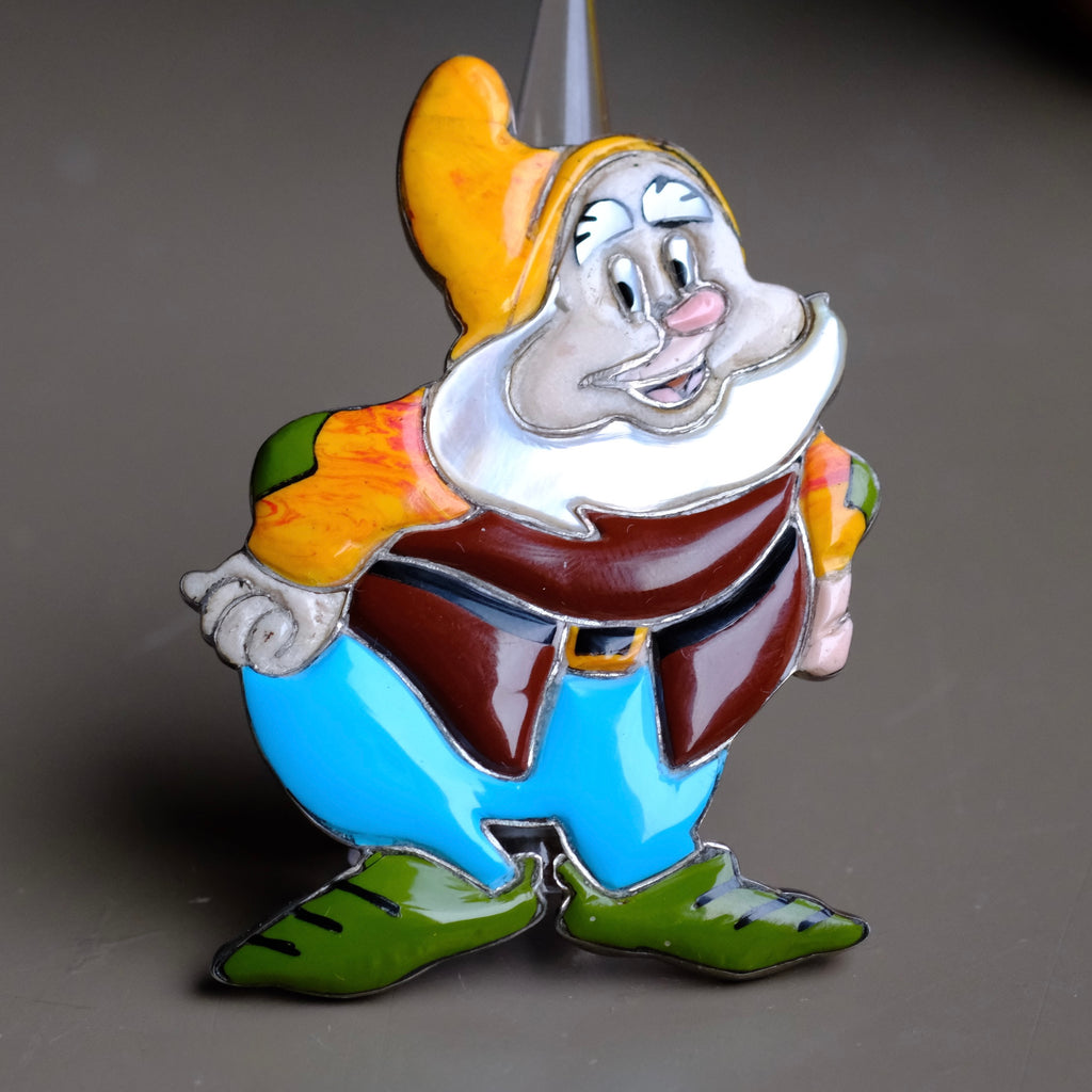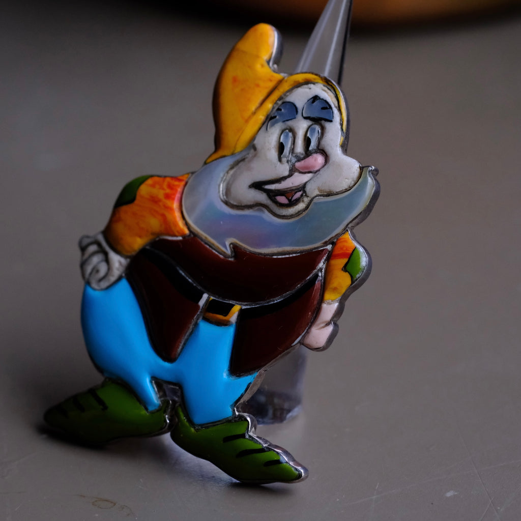 MASSIVE Vintage Sterling Inlaid HAPPY Dwarf Ring 7.75
