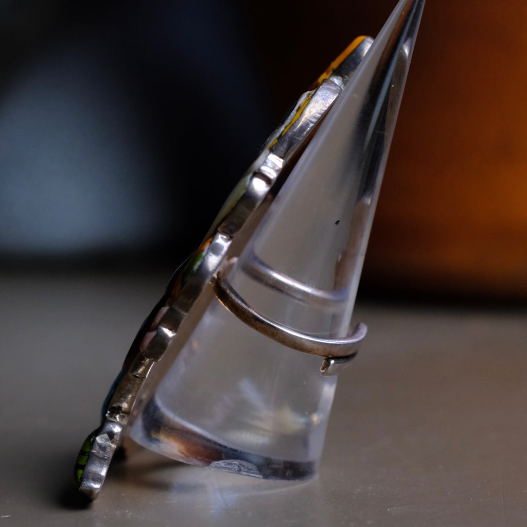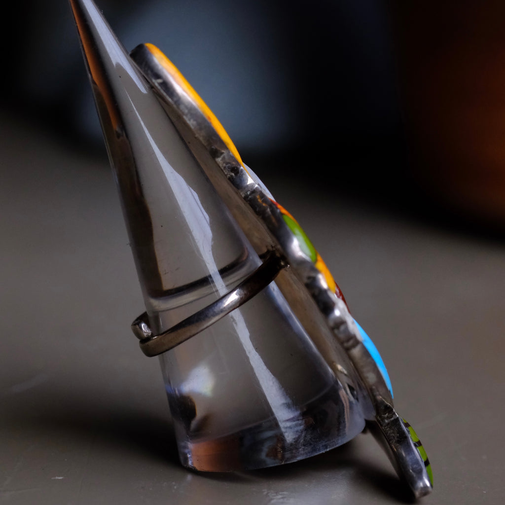 MASSIVE Vintage Sterling Inlaid HAPPY Dwarf Ring