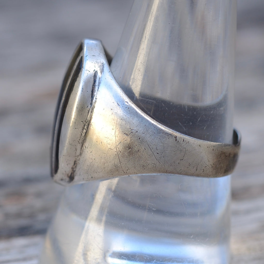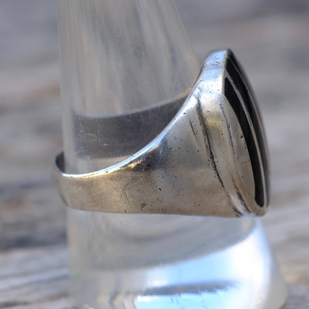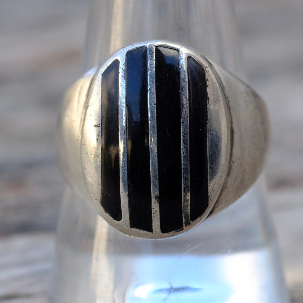 Vintage Sterling Onyx Inlay Striper Ring