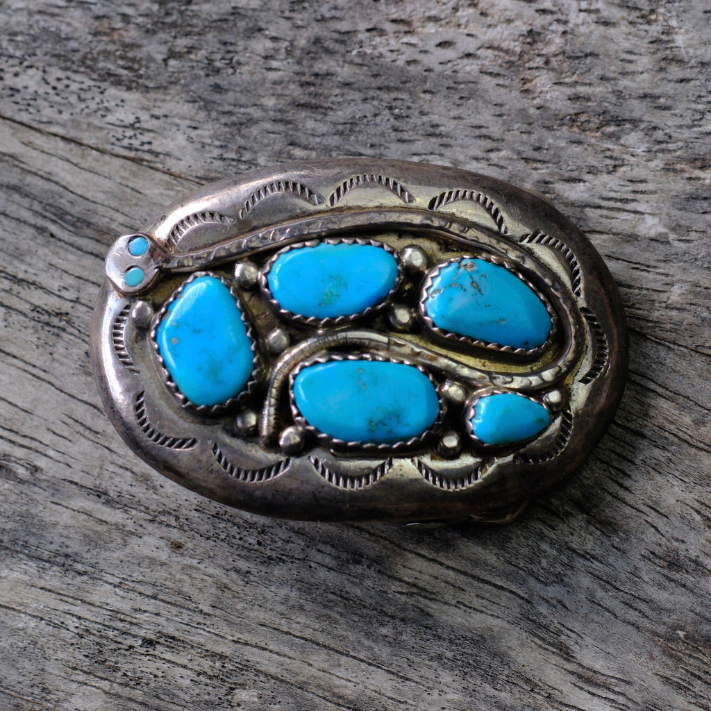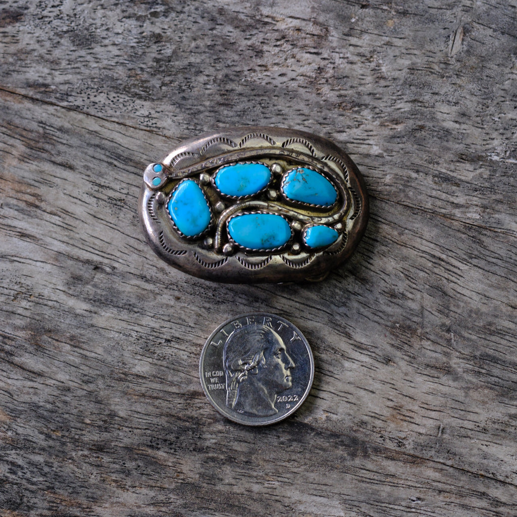 Small Ladies Vintage Sterling Turquoise Snake Belt Buckle