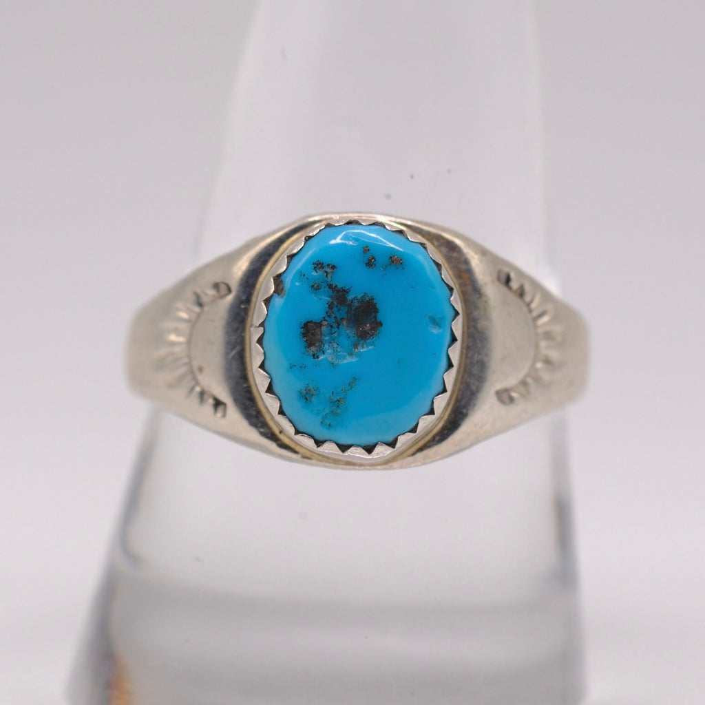 Vintage Sterling Turquoise Stamped Band Ring