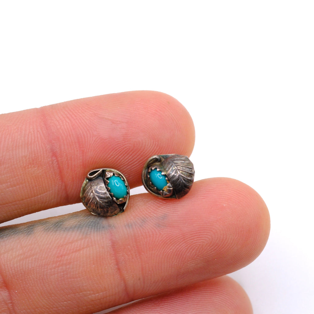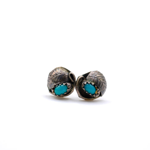 Vintage Sterling Turquoise Feather Stud Earrings