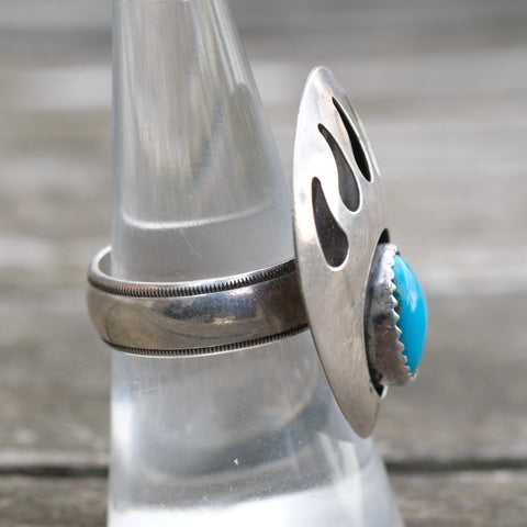 Vintage Sterling Turquoise Bear Paw Ring 8
