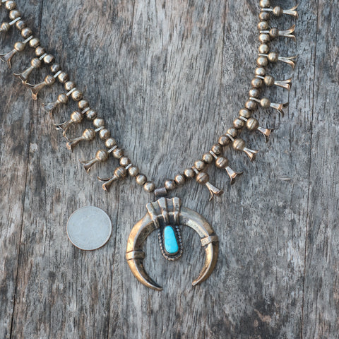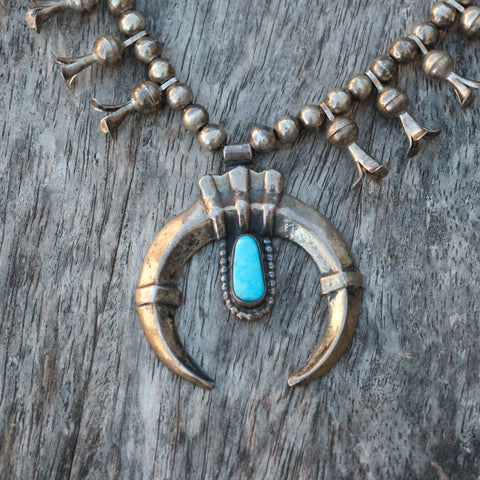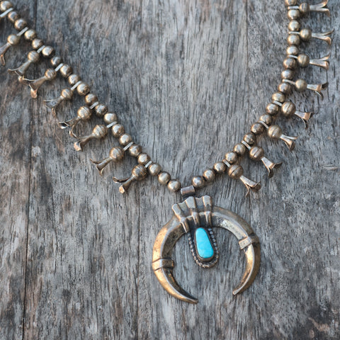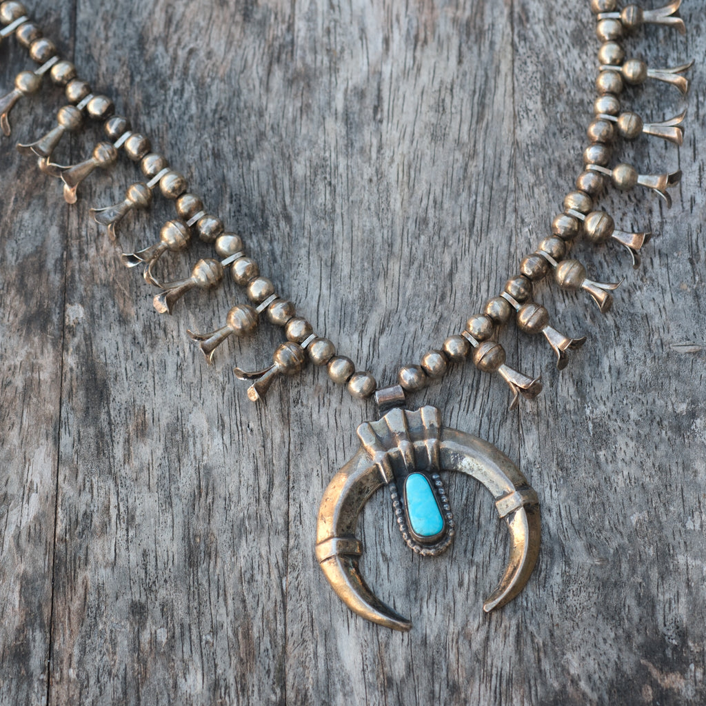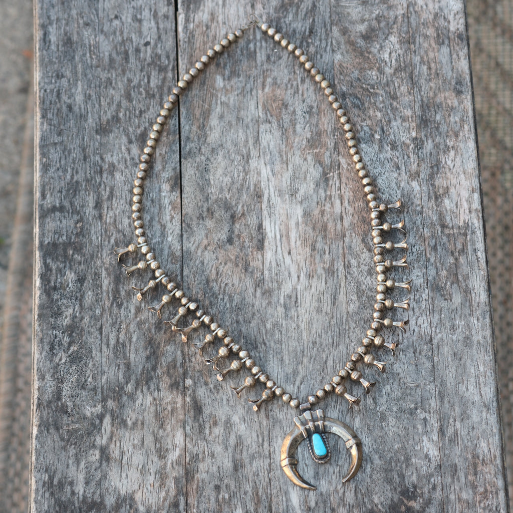 Vintage Sterling Turquoise Squash Blossom Necklace