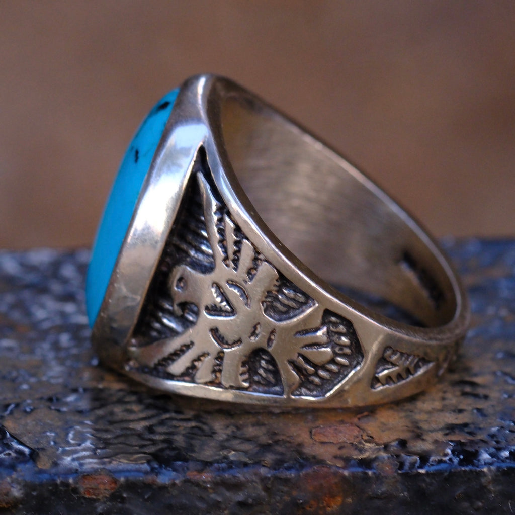 Vintage Sterling Turquoise Thunderbird Ring 8.5