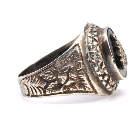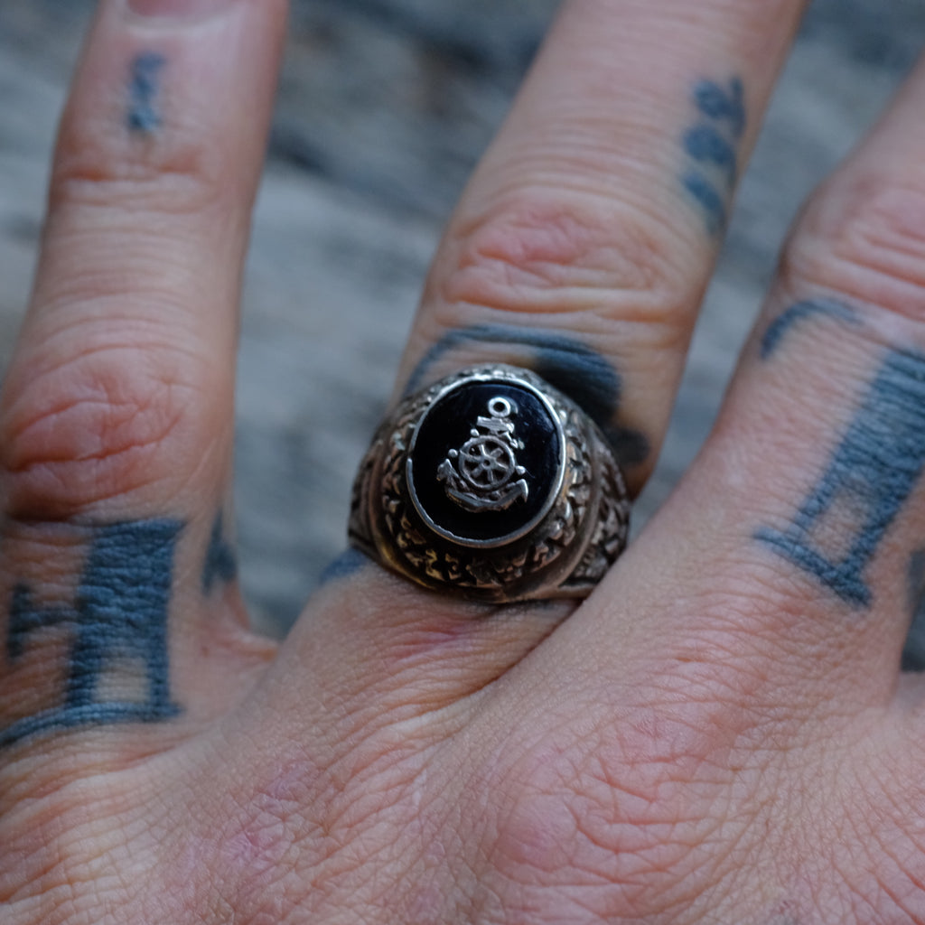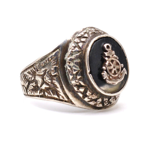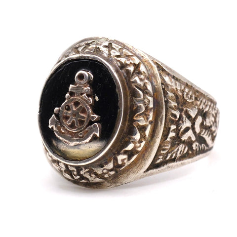Vintage Sterling Floral and Anchor Signet Ring 8.5