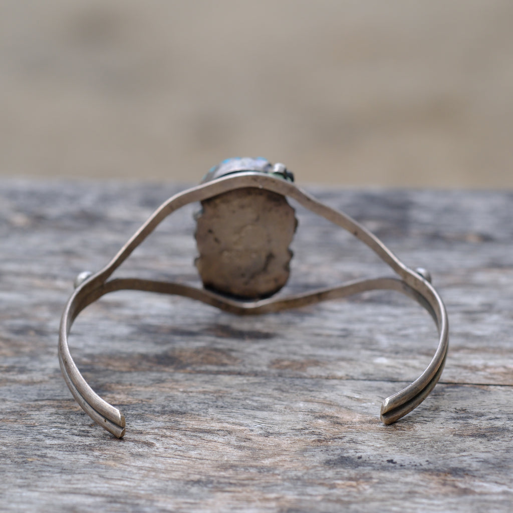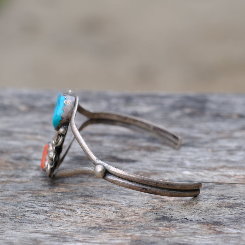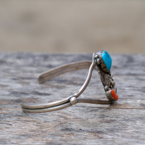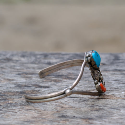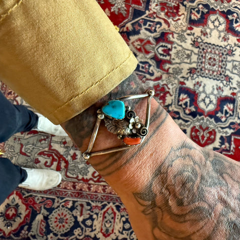 Vintage Sterling Turquoise and Coral Feather Cuff