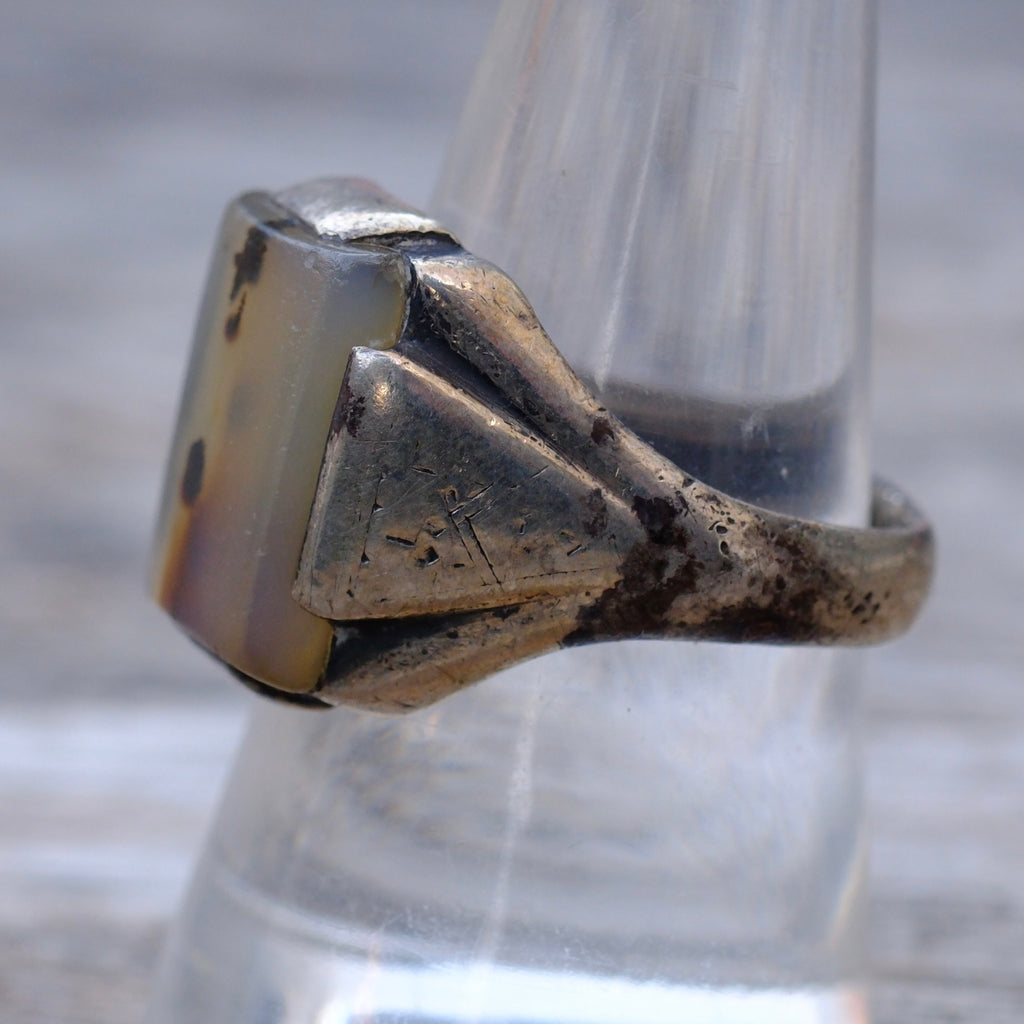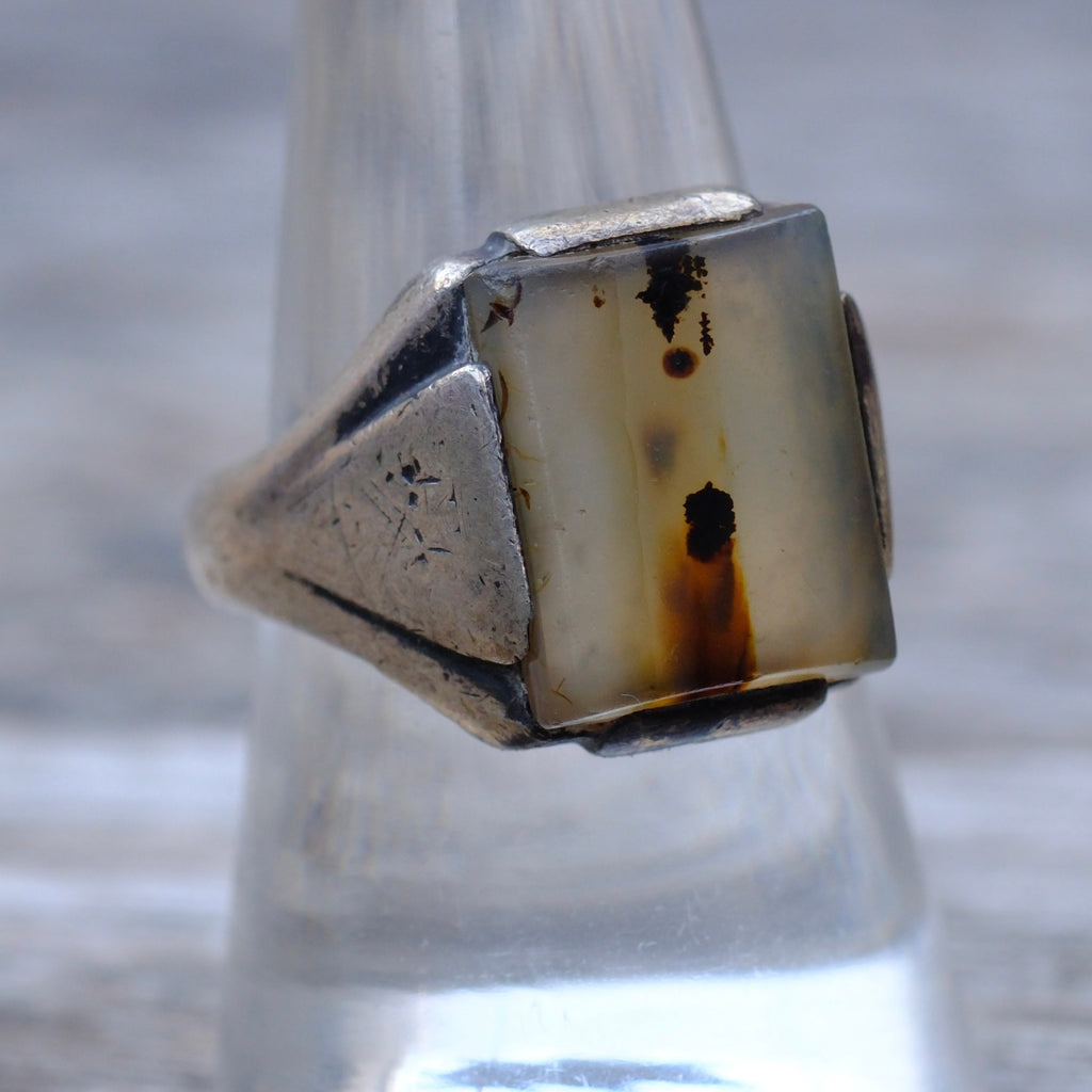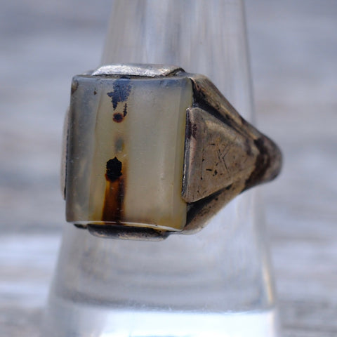 Vintage Sterling Agate Signet Ring